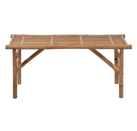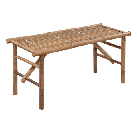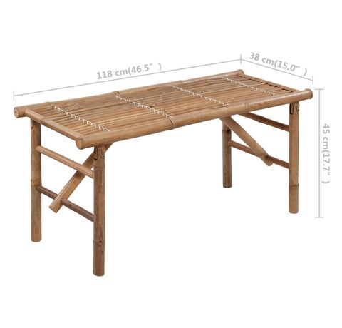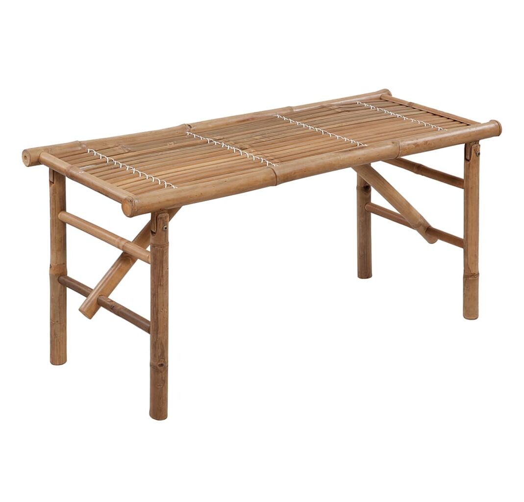 Banca de exterior este pliabilă și astfel portabilă, putând fi ușor depozitată sau montată. Realizată din bambus rezistent la intemperii și la apă, banca de grădină este durabilă și stabilă. De asemenea, este ușor de curățat cu o cârpă umedă. Mai mult, perna inclusă oferă un plus de confort în timpul relaxării. Este fabricată din poliester 100%, care a fost tratat pentru a deveni impermeabil. Fiecare pernă are două seturi de sfori, pentru o fixare mai bună pe bancă.
