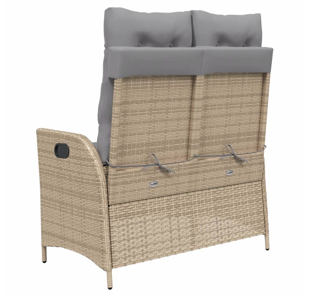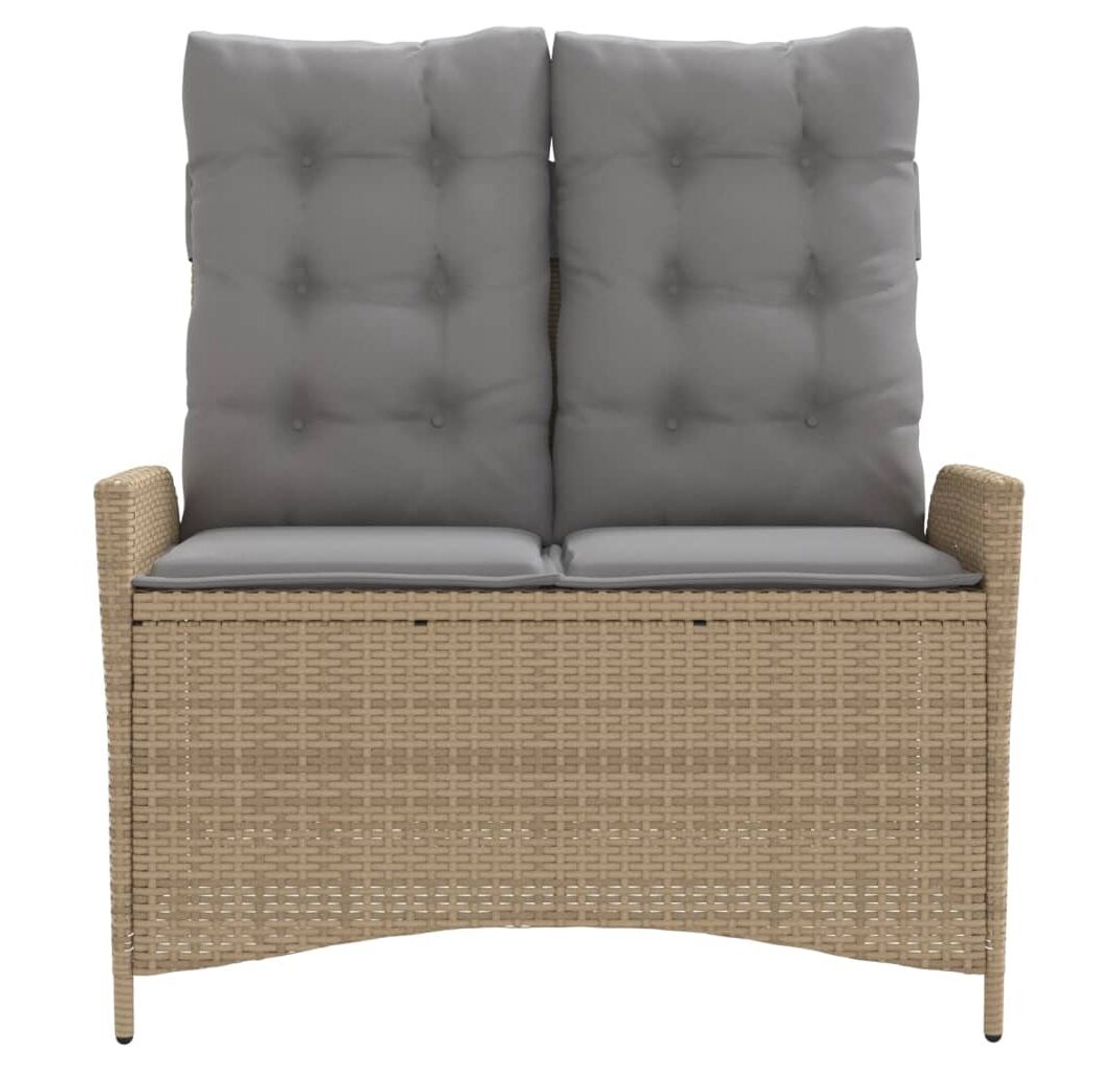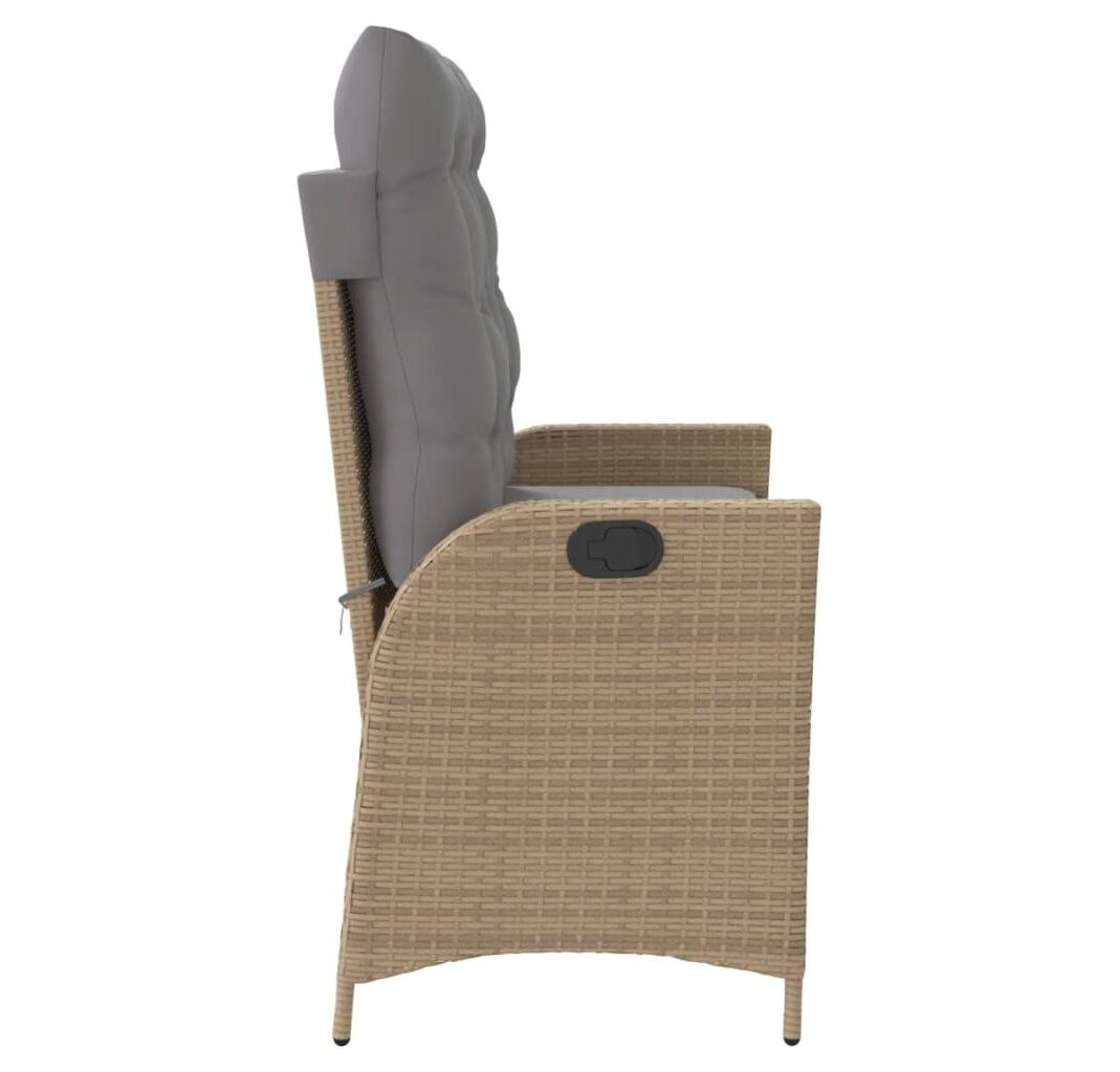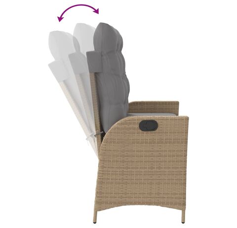 Bancă de grădină rabatabilă cu perne, bej, poliratan