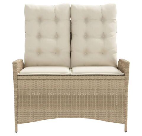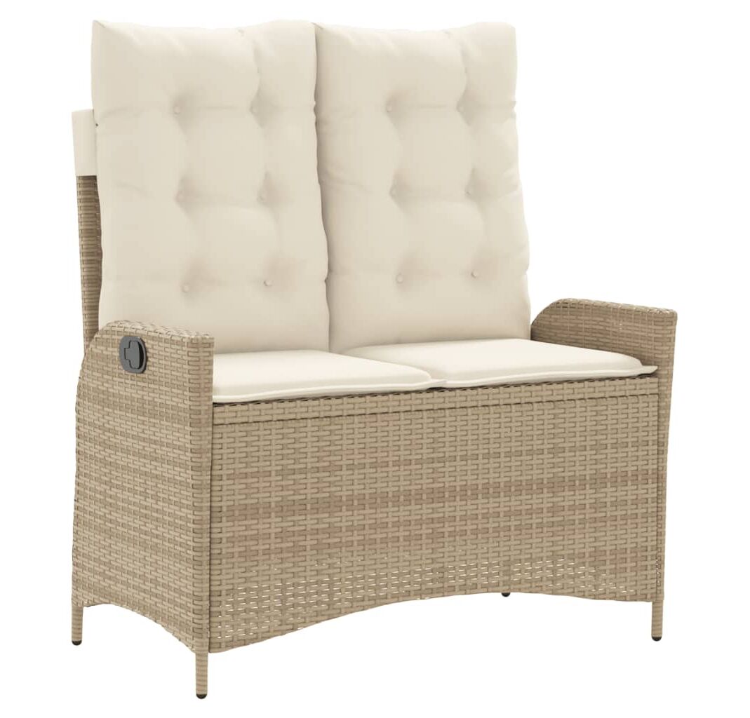 Bancă de grădină rabatabilă cu perne, bej, poliratan
