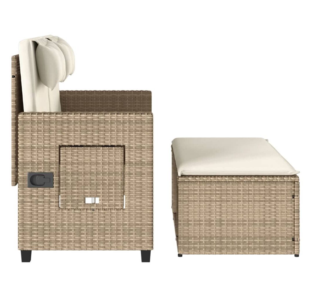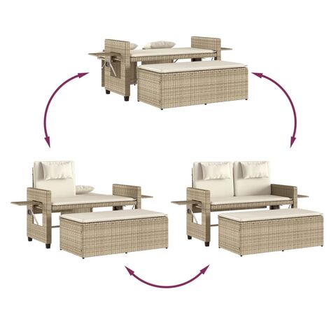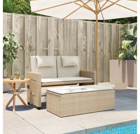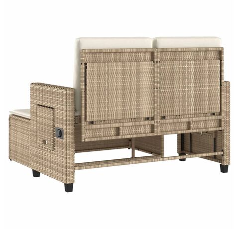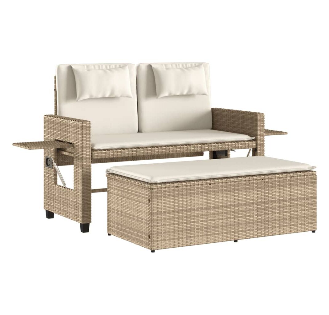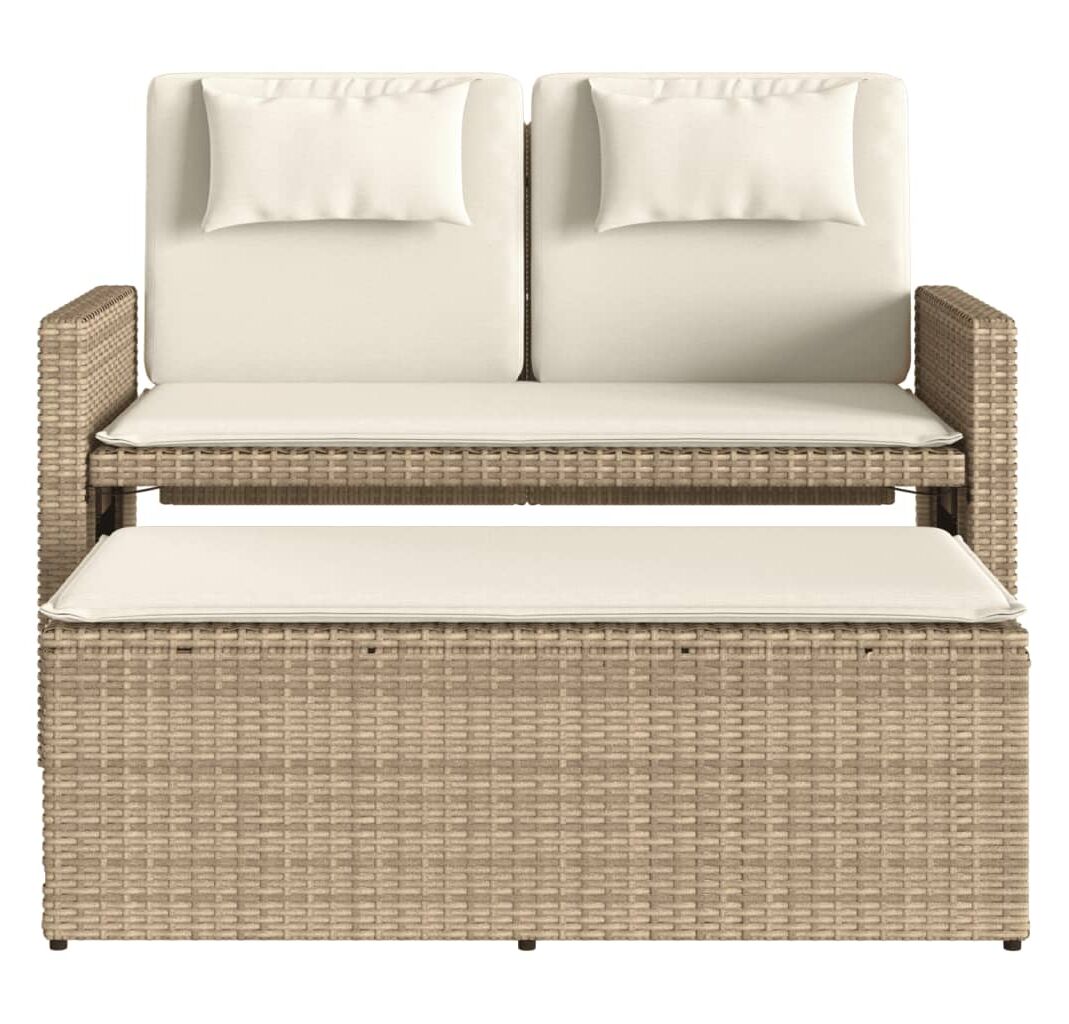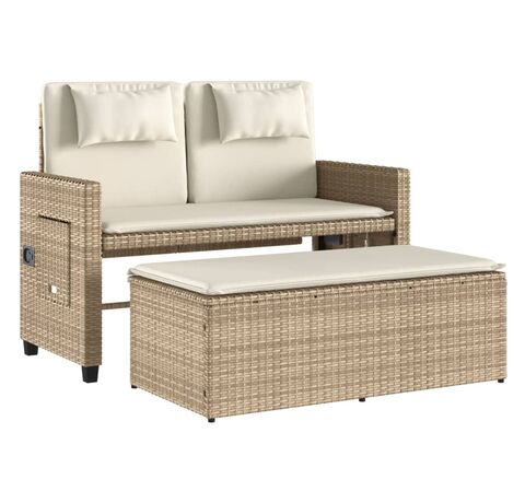 Bancă de grădină rabatabilă cu perne, bej, poliratan
