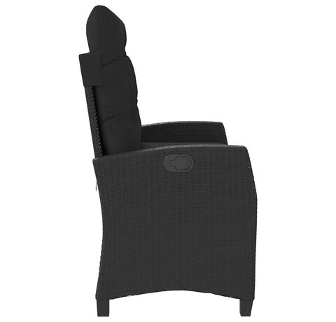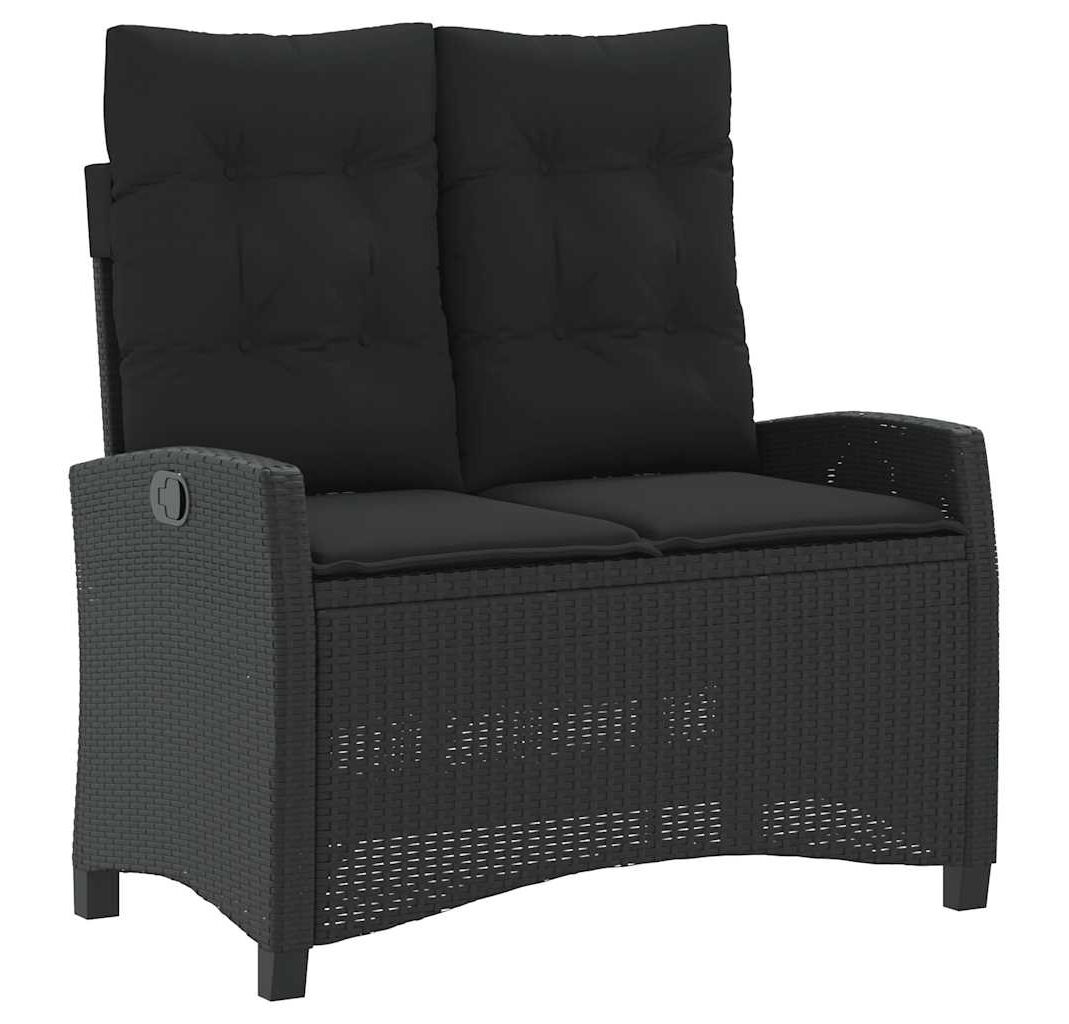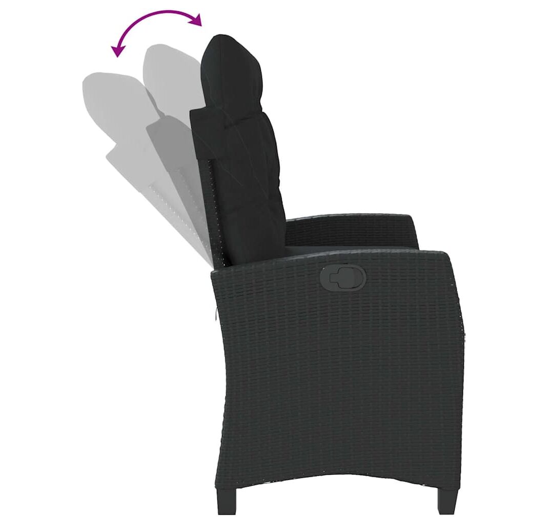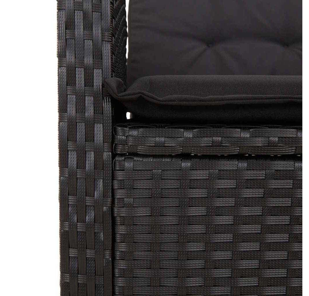 Bancă de grădină rabatabilă cu perne, negru, poliratan