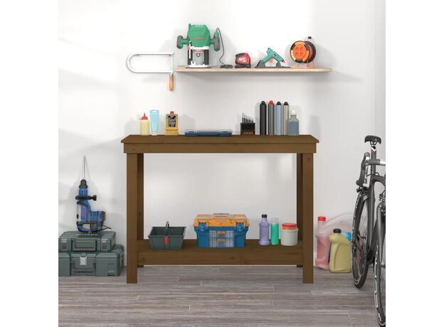 Banc de lucru, maro miere, 110x50x80 cm, lemn masiv pin