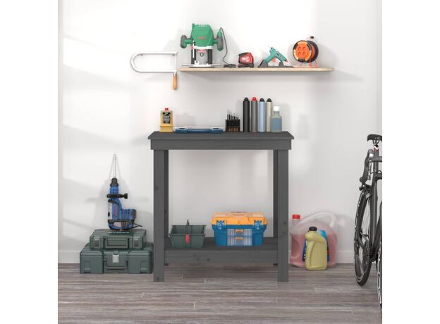 Banc de lucru, gri, 80x50x80 cm, lemn masiv pin