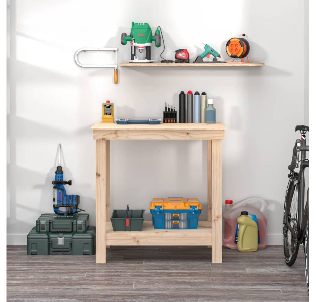 Banc de lucru, 80x50x80 cm, lemn masiv pin