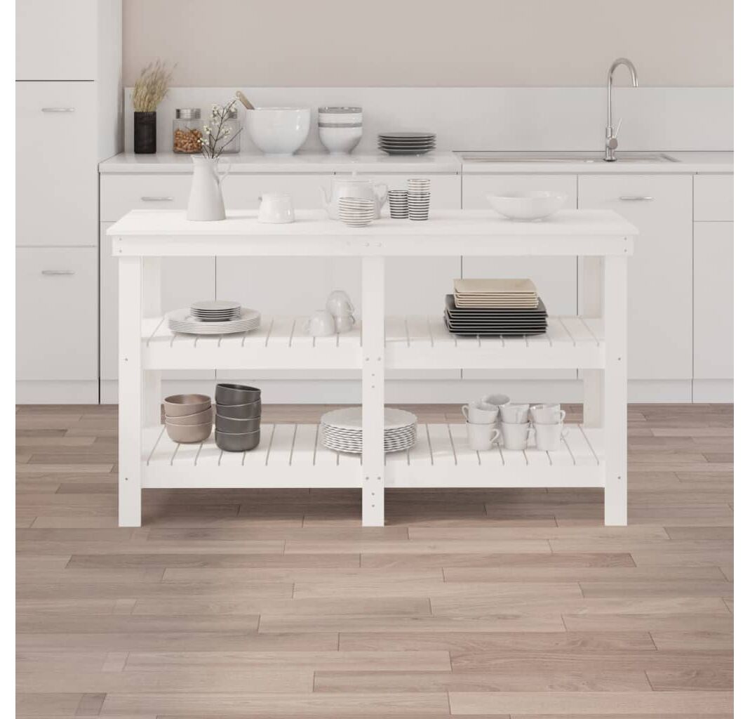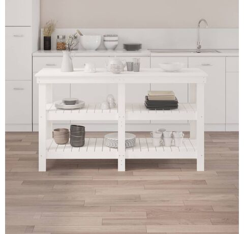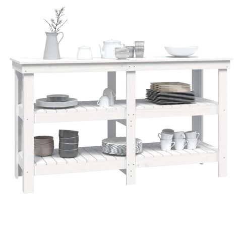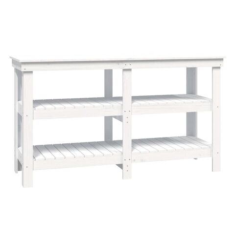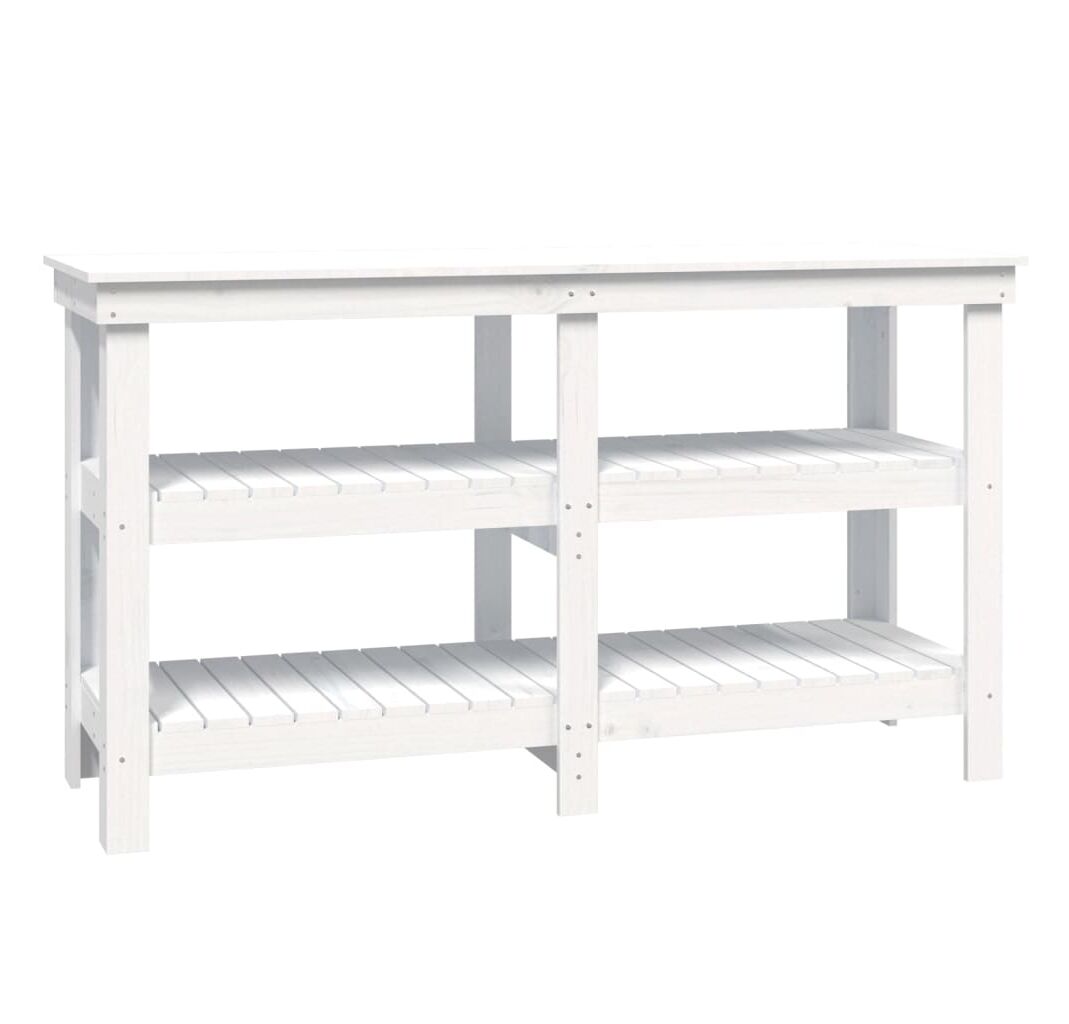 Banc de lucru, alb, 142,5x50x80 cm, lemn masiv pin