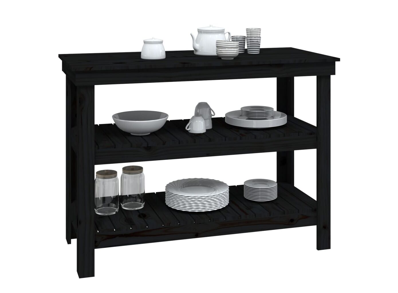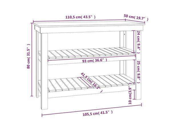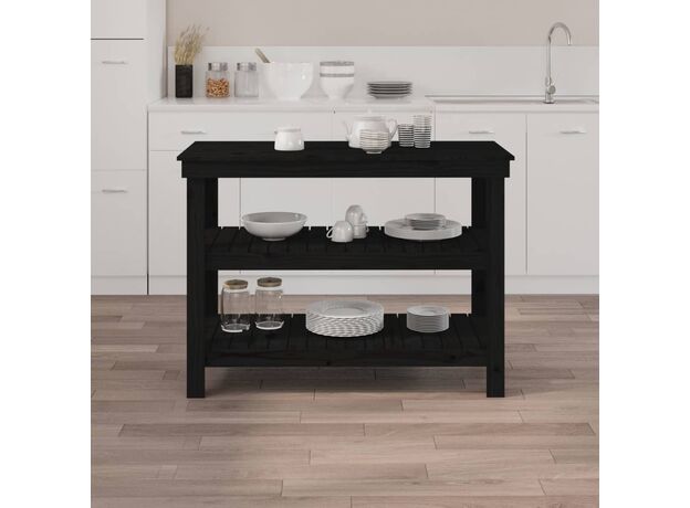 Banc de lucru, negru, 110,5x50x80 cm, lemn masiv pin