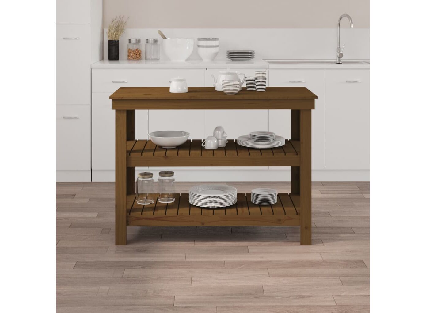 Cantitatea minima pentru "Banc de lucru, maro miere, 110,5x50x80 cm, lemn masiv pin" este 1.