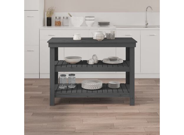 Banc de lucru, gri, 110,5x50x80 cm, lemn masiv pin
