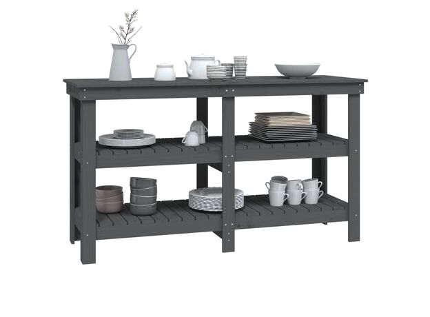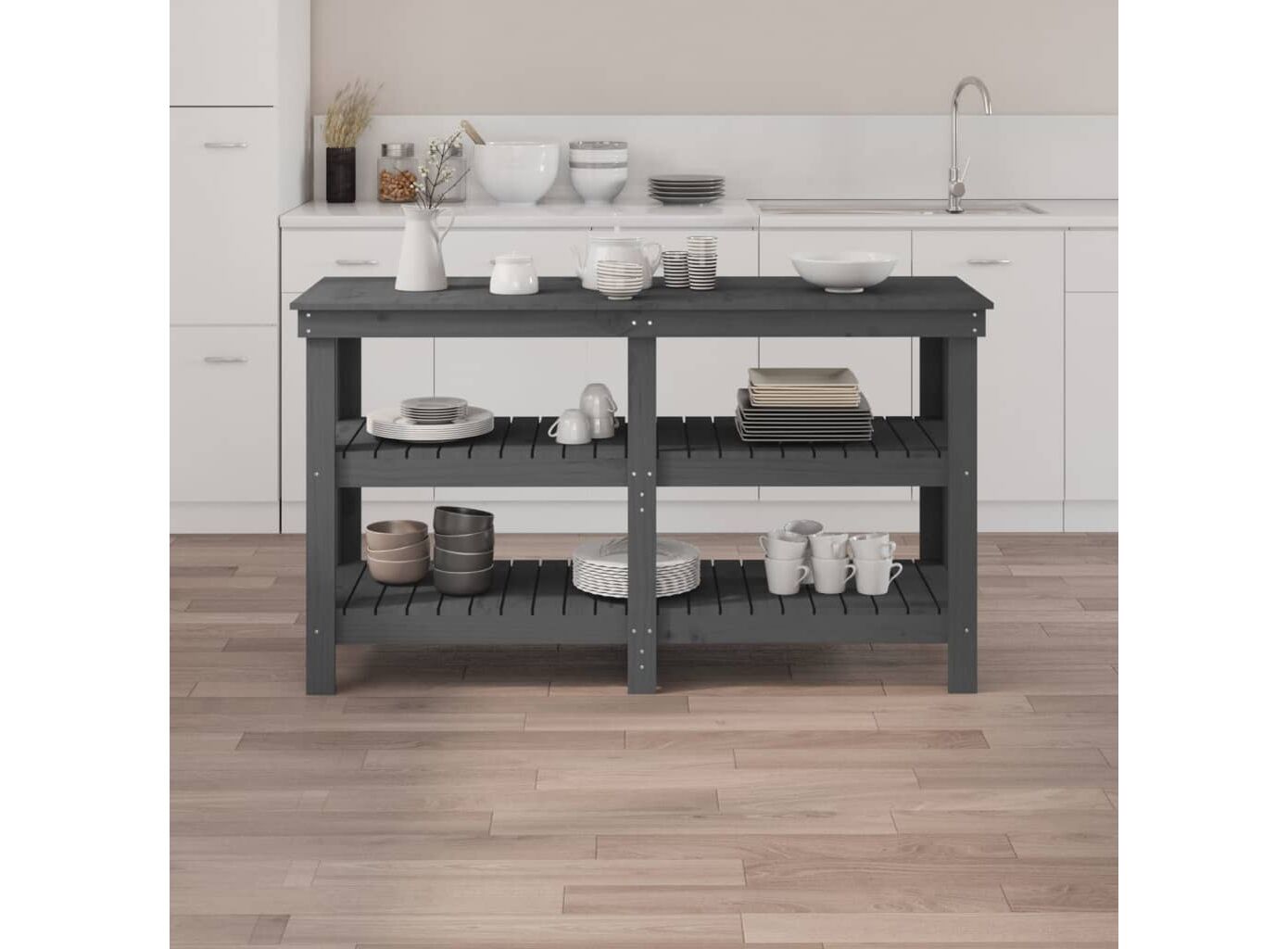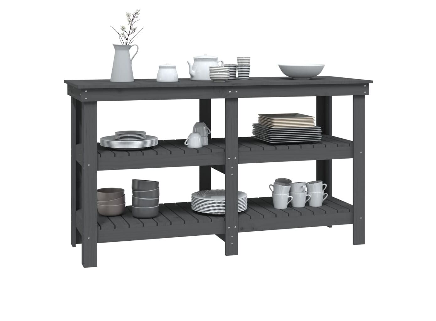 Banc de lucru, gri, 142,5x50x80 cm, lemn masiv pin