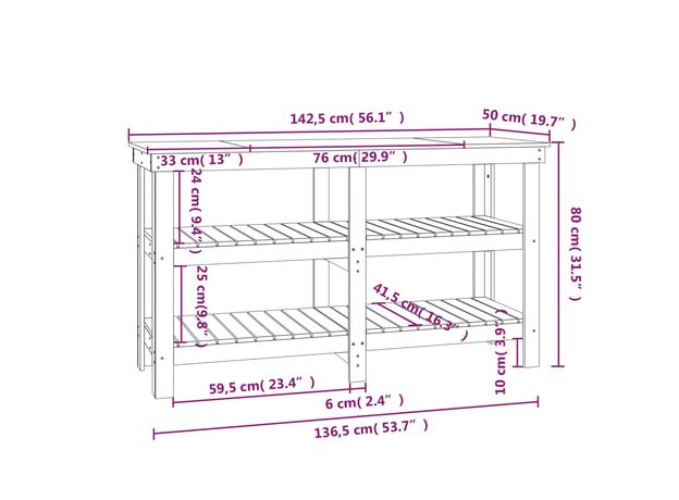 • Spațiu amplu de depozitare: Această masă de lucru cu rafturi, oferă mult spațiu de depozitare pentru a vă păstra lucrurile bine organizate și la îndemână.