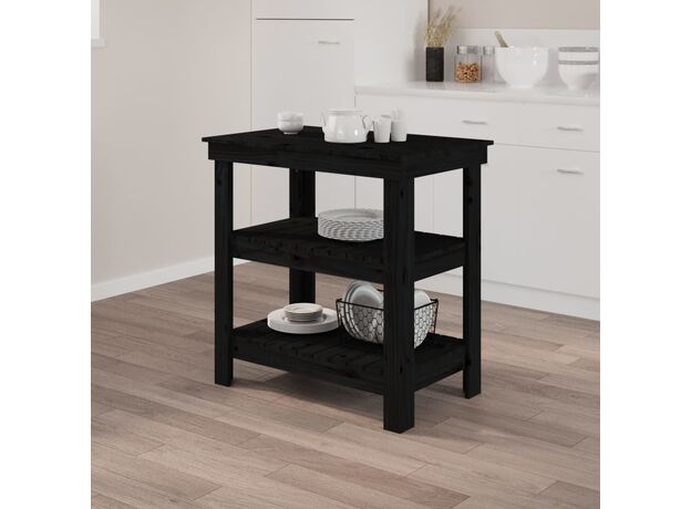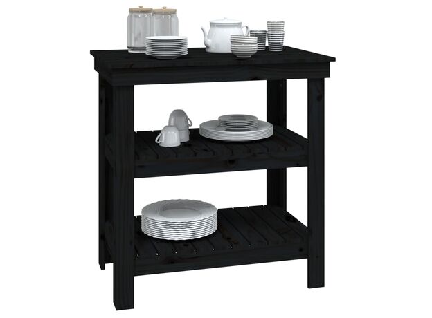 Banc de lucru, negru, 78,5x50x80 cm, lemn masiv pin