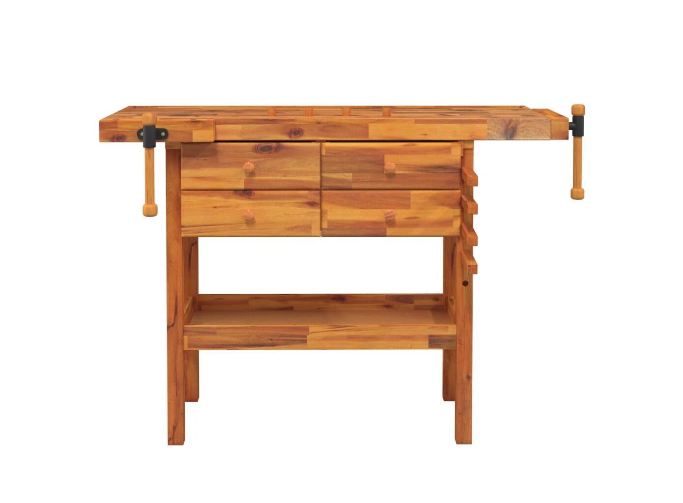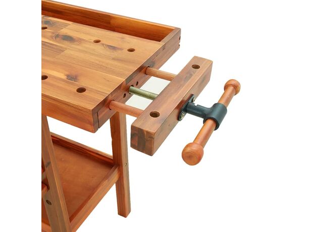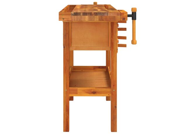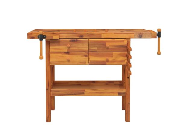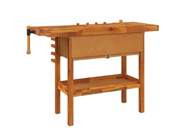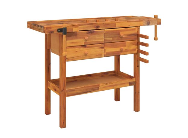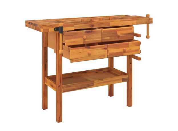 Banc de lucru cu sertare și menghine, 124x52x83 cm, lemn acacia