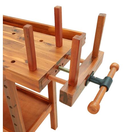 - Robustețe suplimentară: Masa de lucru este echipată cu 1 menghină frontală și 1 menghină de capăt, inclusiv 4 tije de lemn pentru fixarea fermă și sigură a pieselor de prelucrat.