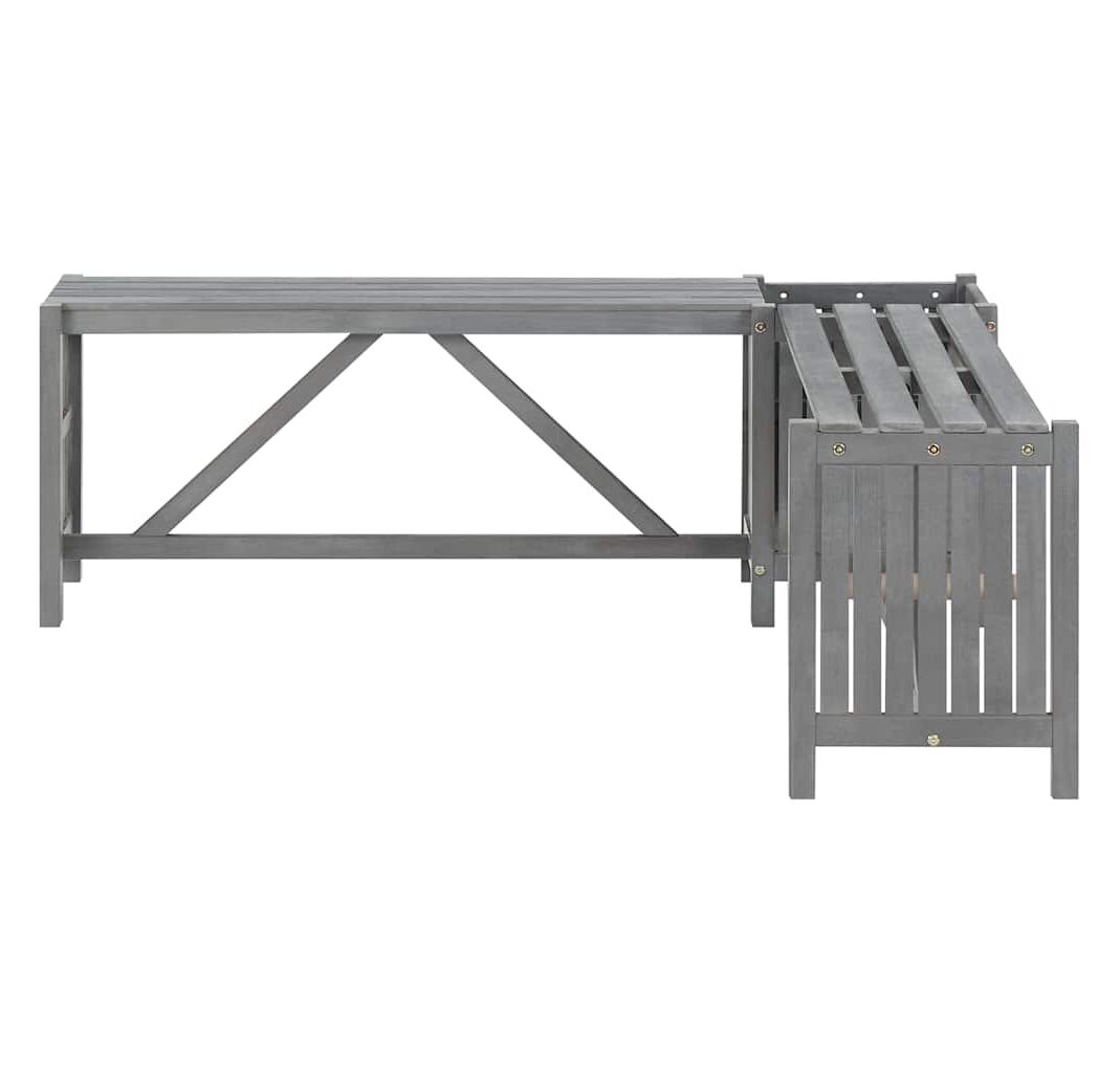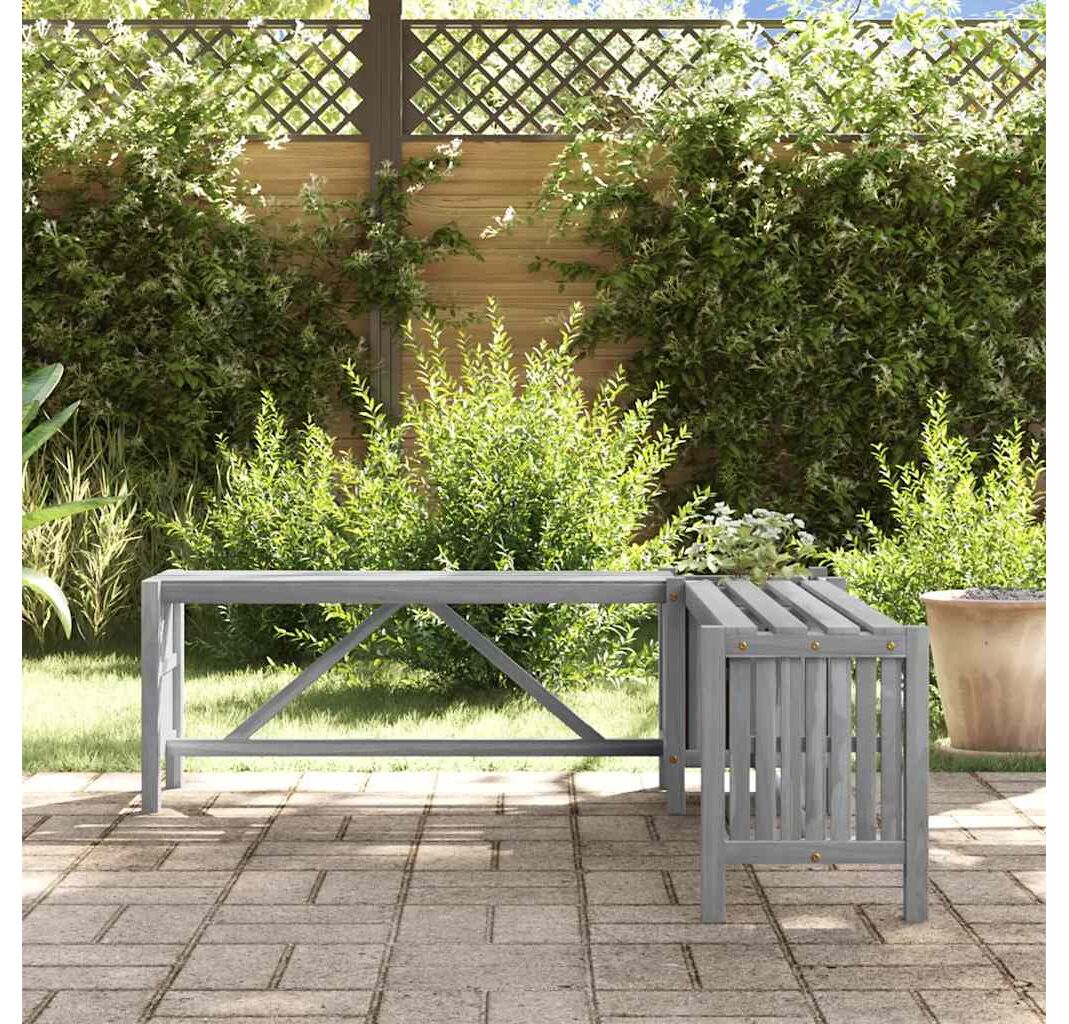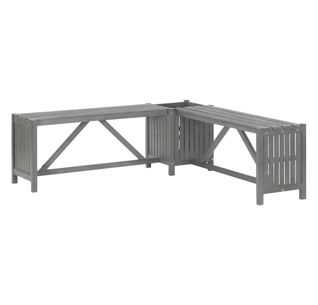Bancă grădină de colț cu jardinieră 117cm gri lemn masiv acacia