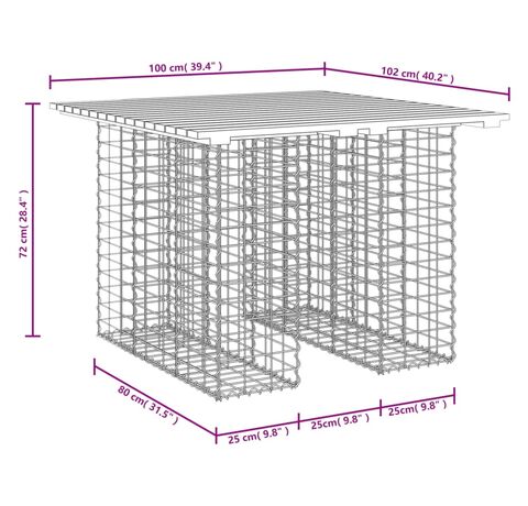 - Dimensiuni coș gabion: 25 x 80 x 70 cm (l x ad. x î)