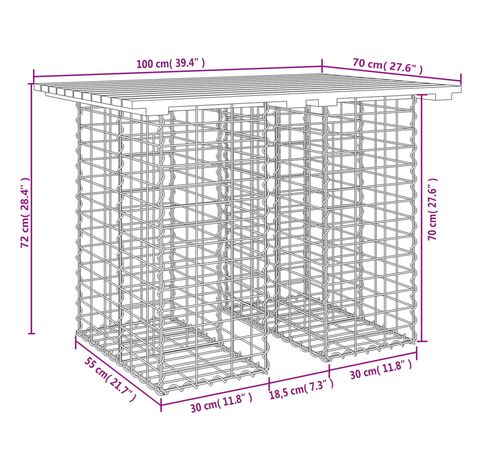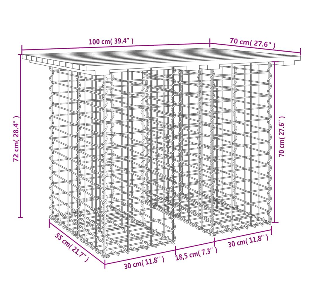 Bancă grădină, design gabion, 100x70x72 cm, lemn pin impregnat