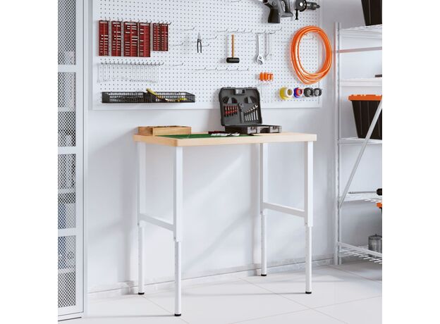 - Picior reglabil în înălțime: Picioarele din lemn ale bancului de lucru sunt reglabile în înălțime, astfel încât să îl puteți personaliza în funcție de preferințele dvs.