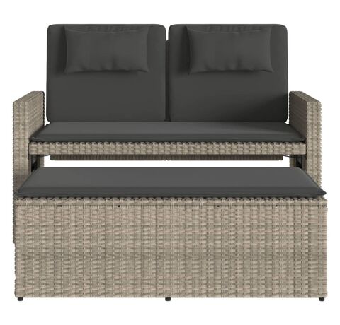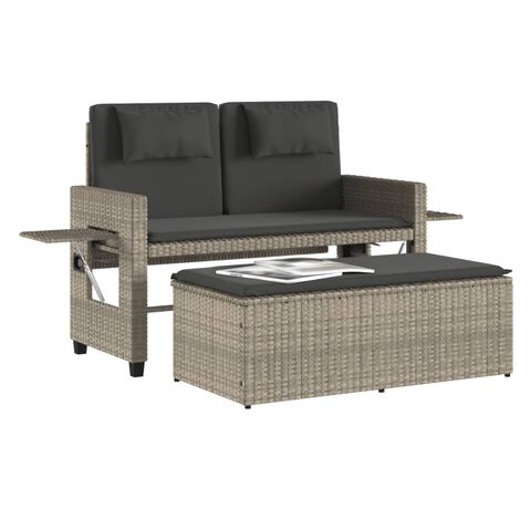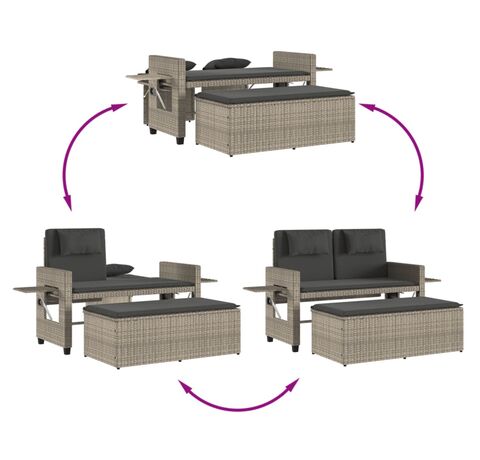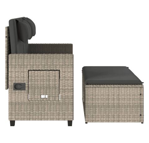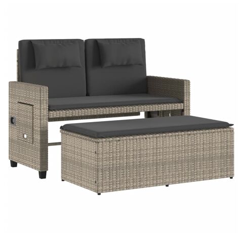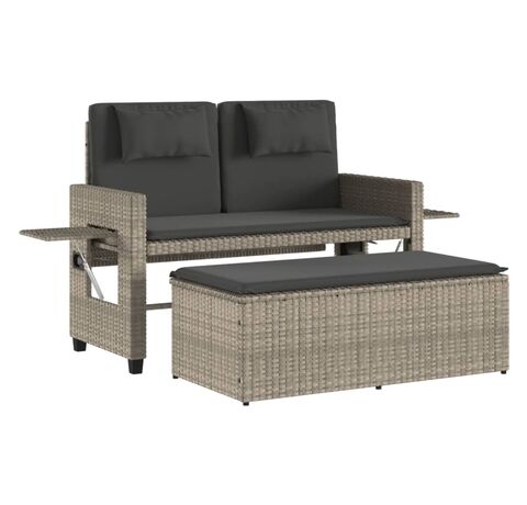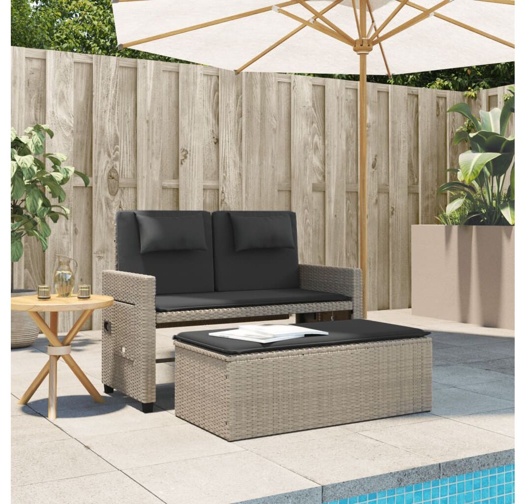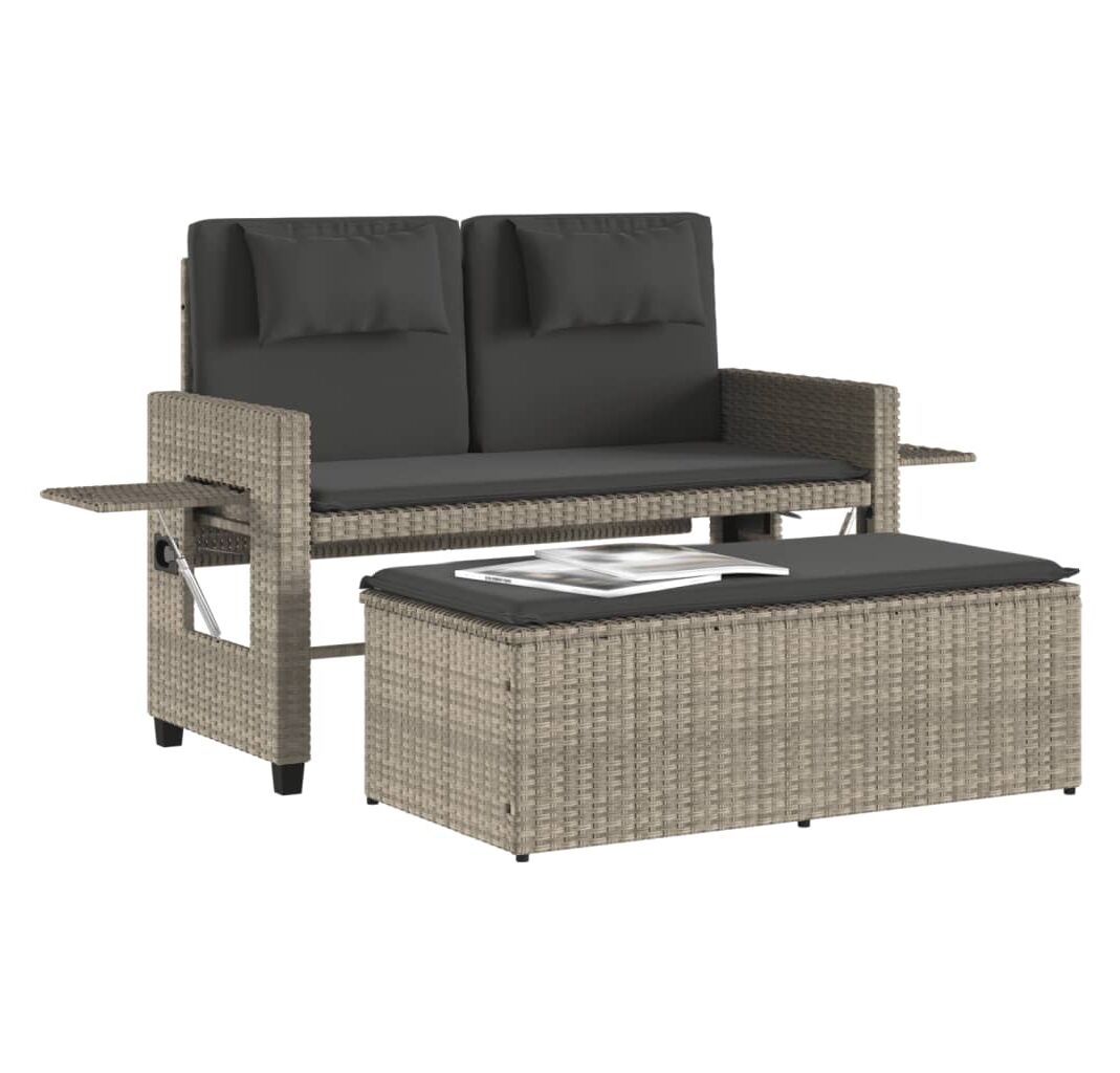 Bancă rabatabilă de grădină cu perne, gri deschis, poliratan