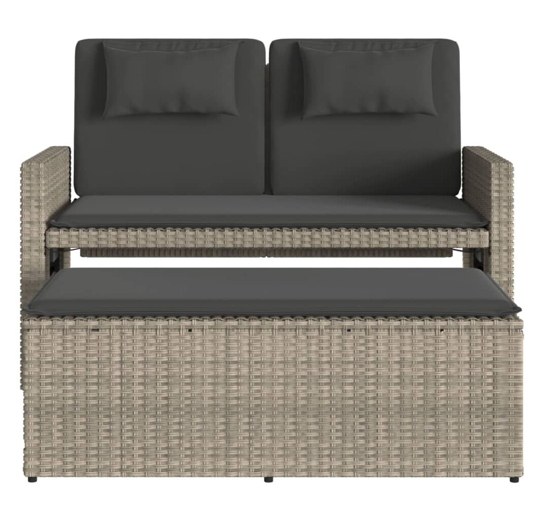 • Funcționalitate versatilă: Acest mobilier de exterior poate fi folosit ca o banchetă cu 2 locuri sau ca o canapea extensibilă. O poți schimba cu ușurință într-un pat, înclinând spătarul și trăgând taburetul de sub bancă. Panourile de sprijin din spatele spătarelor fac patul mai stabil.