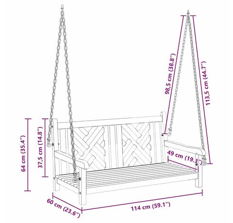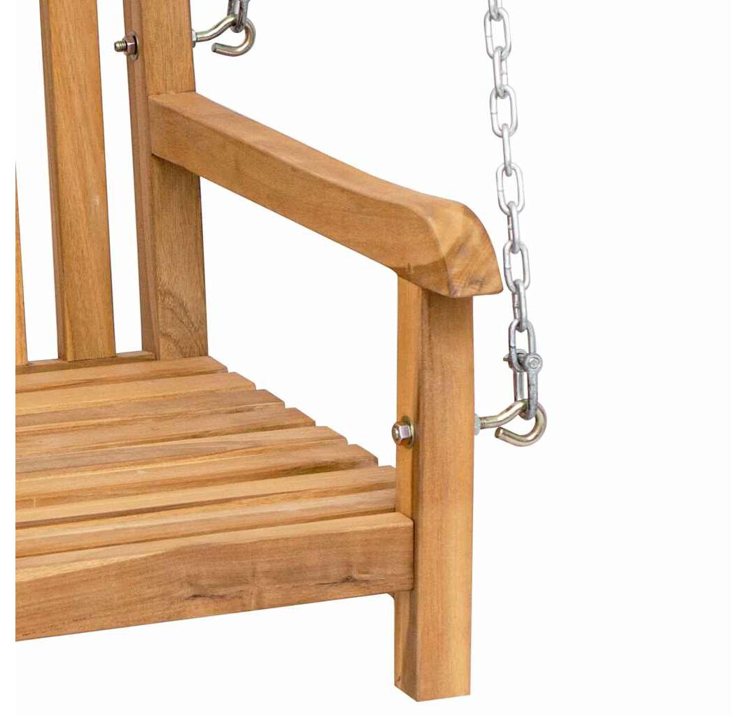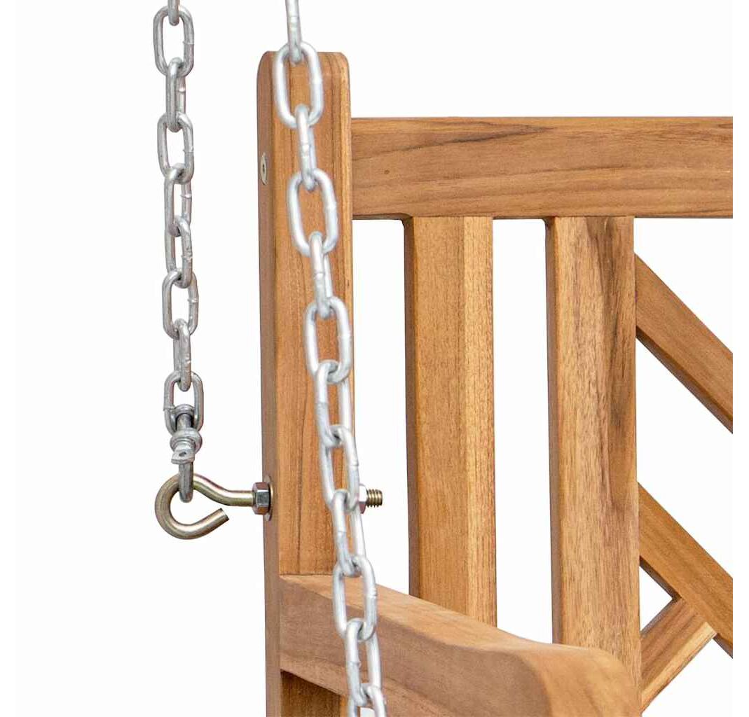 - Set Complet: Banca vine cu o pereche de lanțuri galvanizate și șase carabiniere în formă de U, așa că montajul e super simplu și rămâne bine fixată. Fiecare piesă e gândită pentru stabilitate și ușurință, deci asamblarea e floare la ureche.