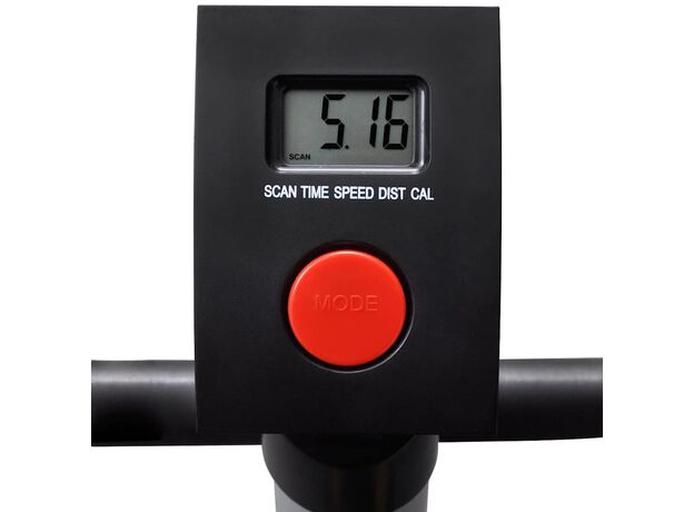 Ecranul LCD vă va oferi toate informațiile relevante, inclusiv timpul, viteza, distanța și caloriile arse. Scaunul este complet reglabil pentru a se potrivi cu orice înălțime, ceea ce vă asigură un antrenament confortabil. Mânerul de rezistență +/- de pe bicicleta de exerciții permite strângerea curelei pentru a crea un antrenament mai intens.