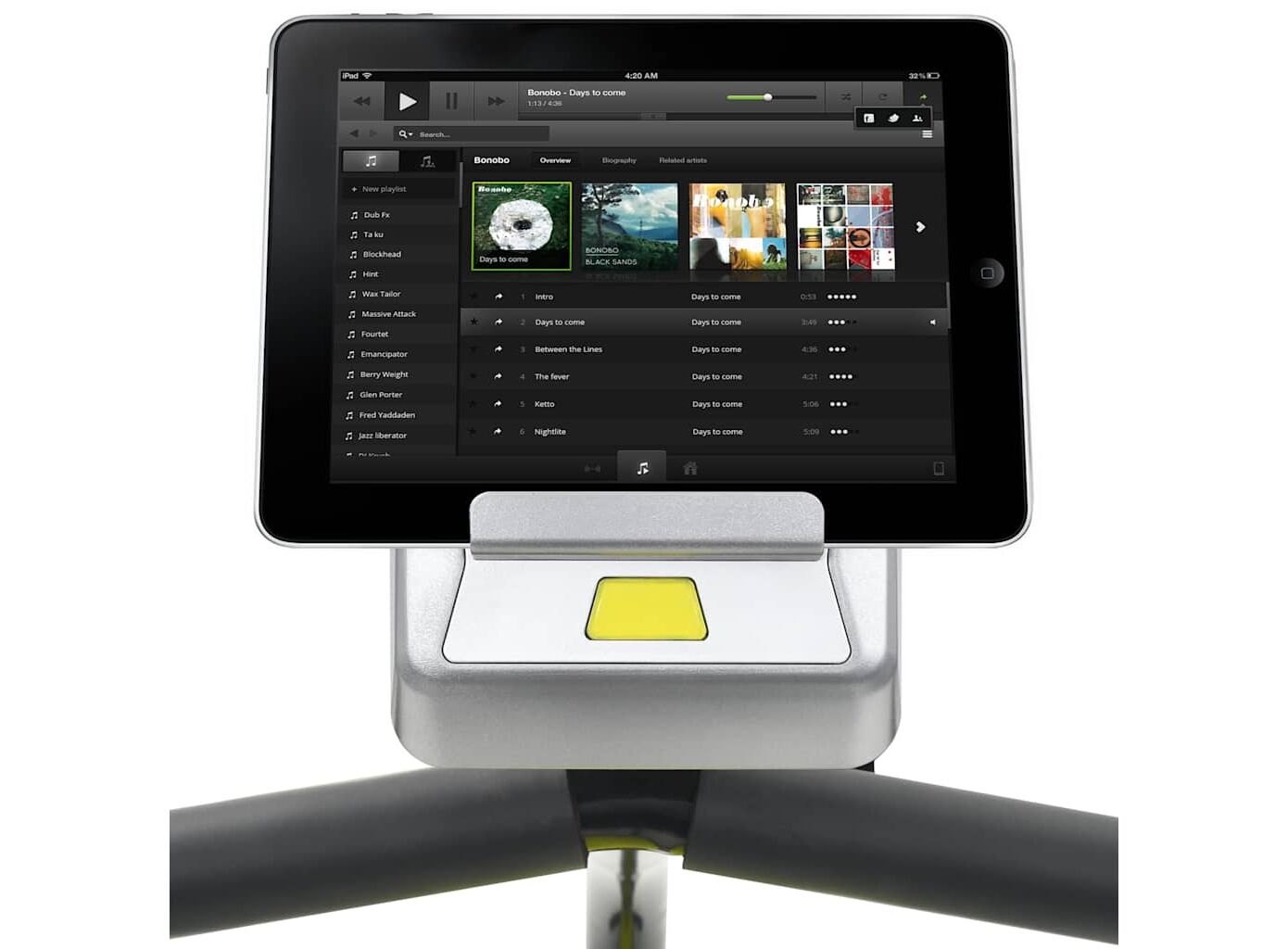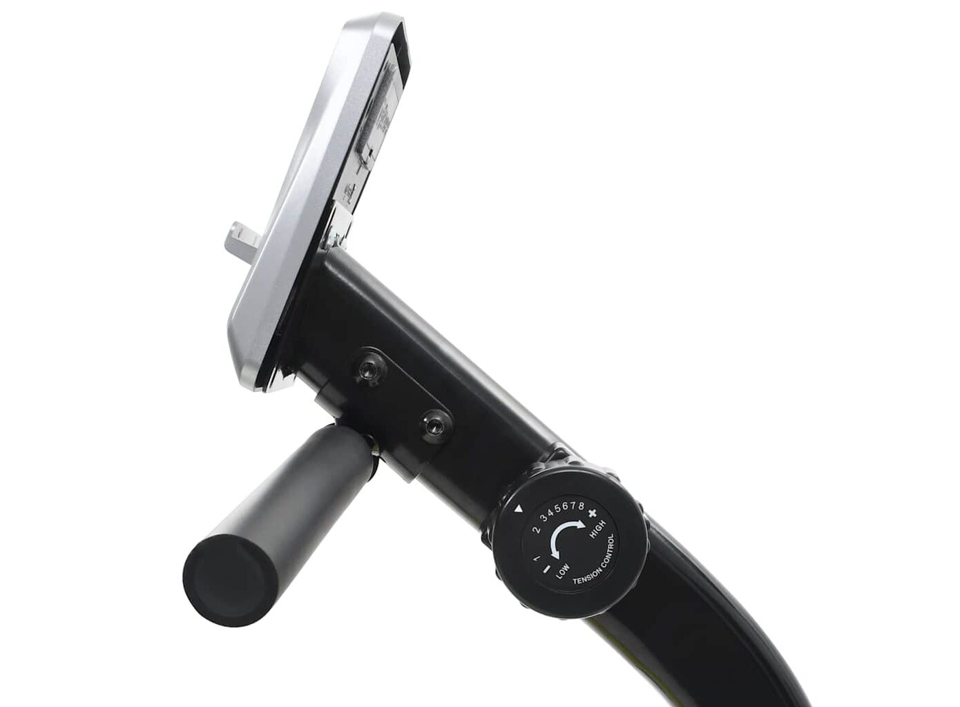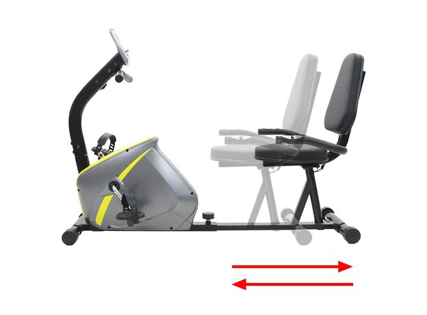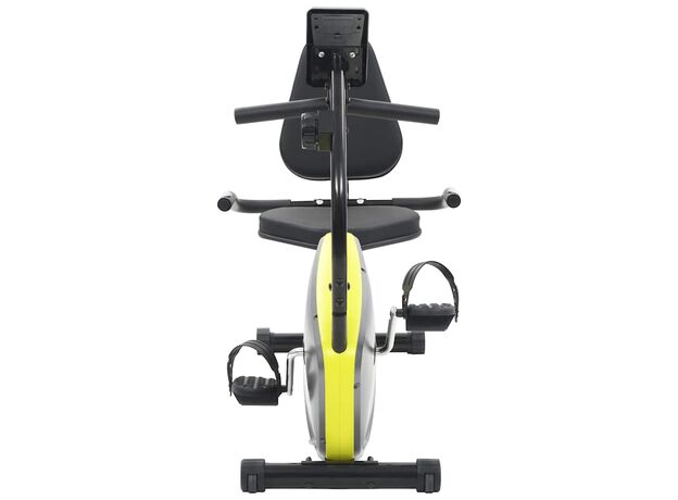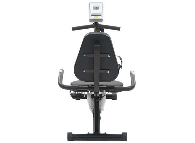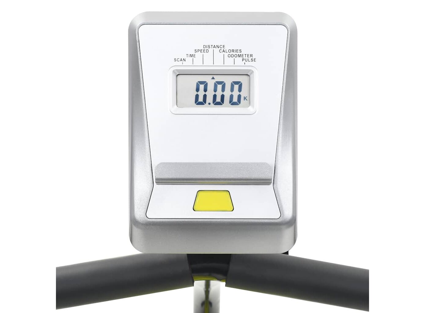 Vă puteți monitoriza performanța pe afișajul LCD care prezintă informații despre timpul scurs, viteza curentă, distanță, calorii arse, odometru și puls. Afișajul computerului dispune de un suport pentru tabletă, astfel încât să puteți utiliza tableta sau să vizionați un film în timpul antrenamentului. Bicicleta de exerciții este proiectată ergonomic. Scaunul capitonat în strat gros vă oferă o experiență mai confortabilă și poate fi reglat pentru poziția cea mai confortabilă, cu ajutorul mânerului cu arc. Pedalele anti-alunecare permit un transfer optim de energie de la picioare la pedale. Curelele de la pedale vor împiedica alunecarea accidentală de pe pedale. Sistemul de rezistență magnetică și volanta de precizie sunt fără fricțiune, pentru o funcționare fără probleme, silențioasă și care nu necesită întreținere. Rotilele de transport facilitează mutarea ergometrului. Echipamentul cardio este ușor de asamblat.