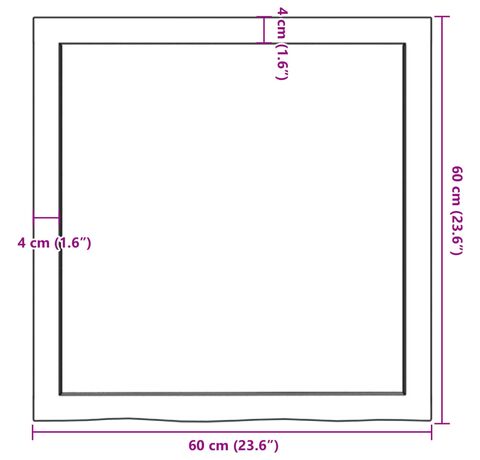 Blat de masă maro 60x60x(2-4) cm, lemn masiv stejar tratat