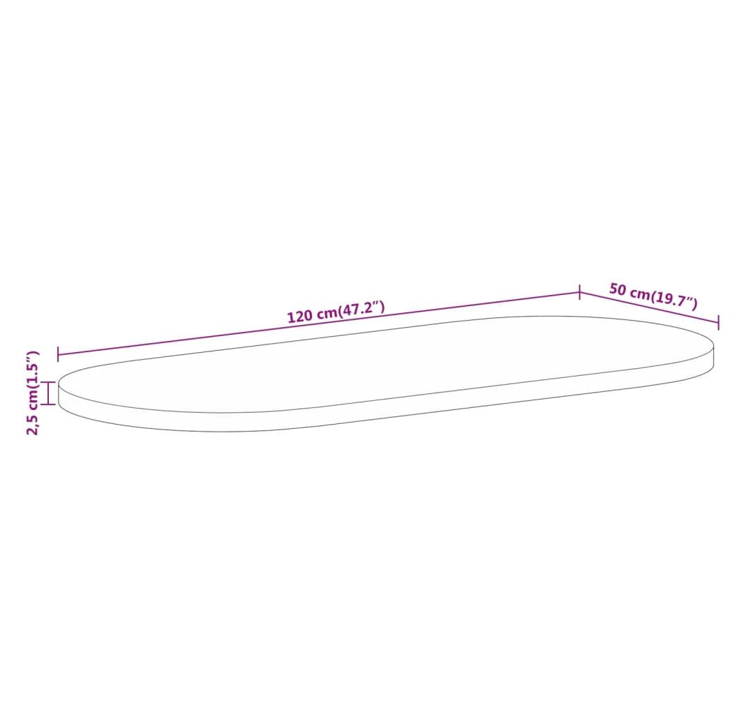 120 x 50 x 2,5 cm (L x l x gros.)
