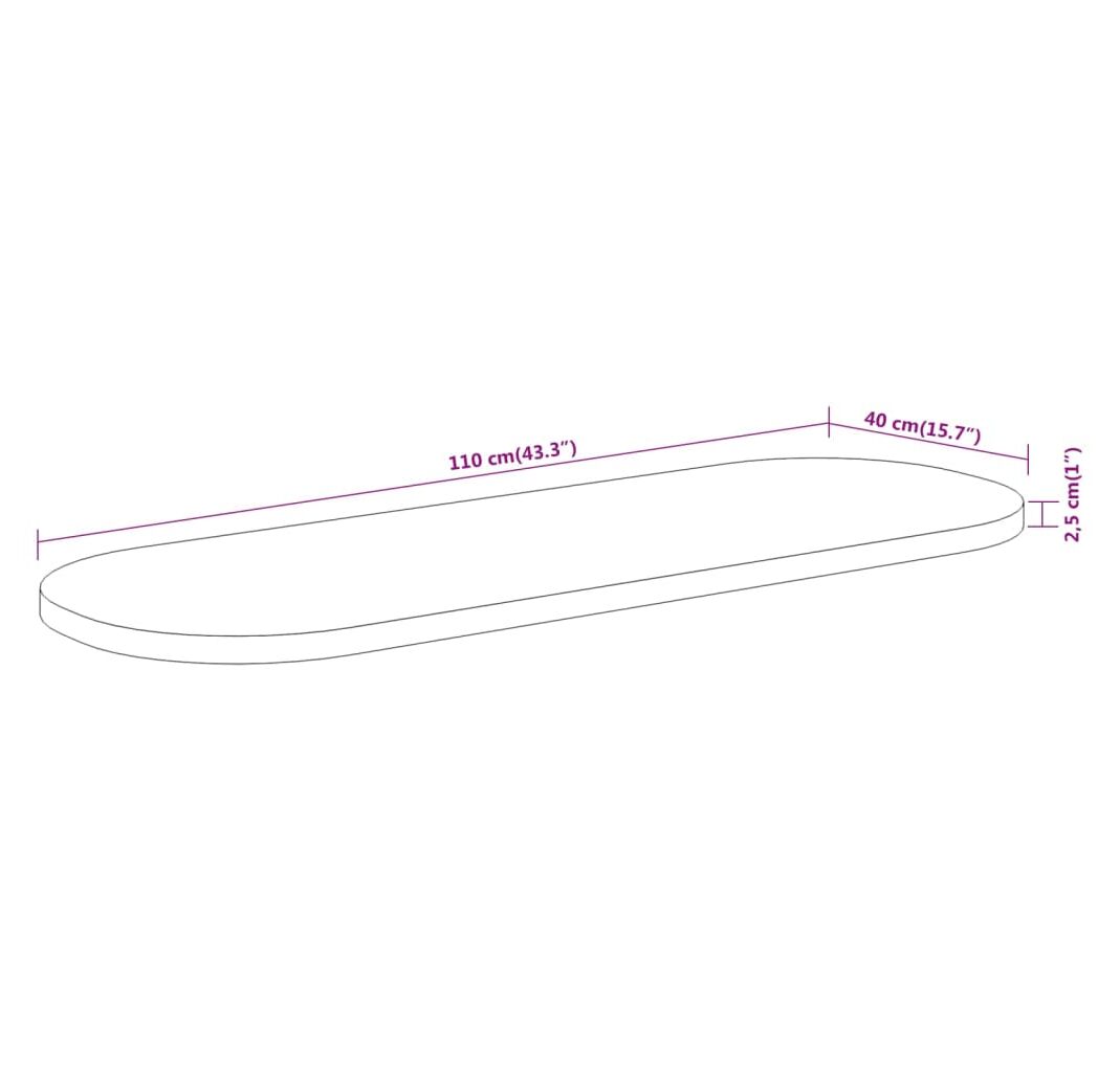 110 x 40 x 2,5 cm (L x l x gros.)