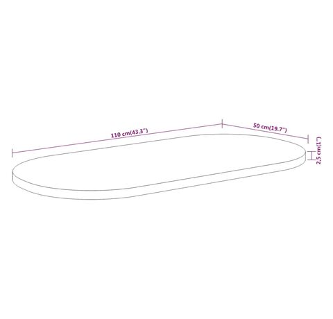 110 x 50 x 2,5 cm (L x l x gros.)