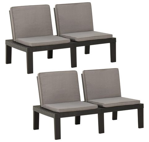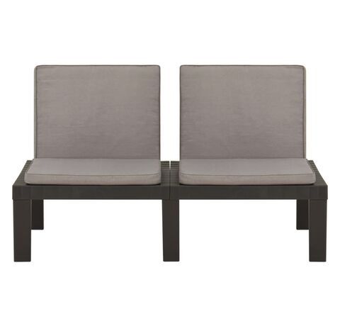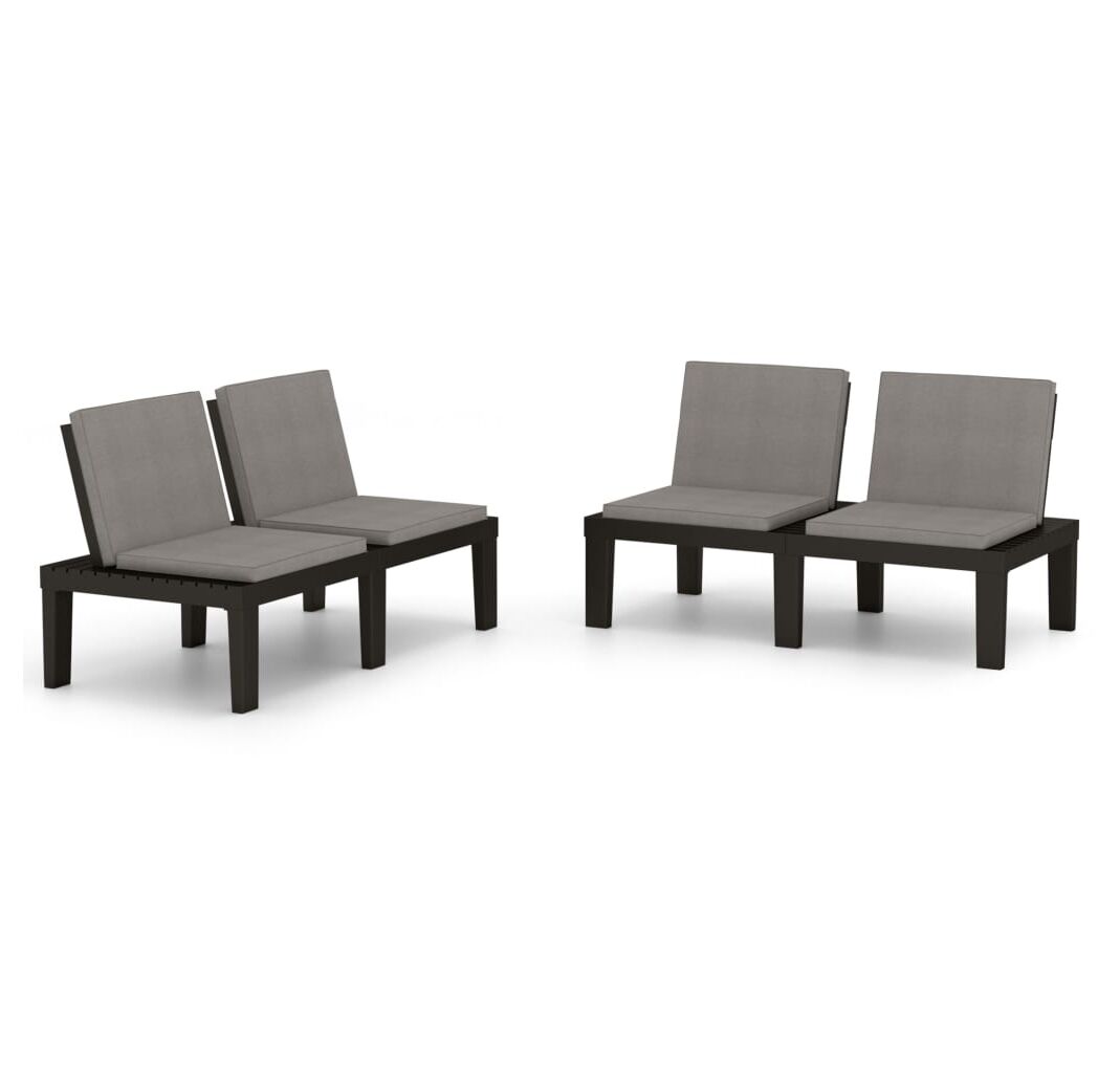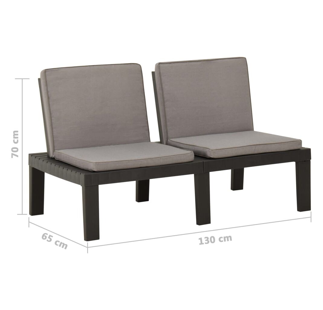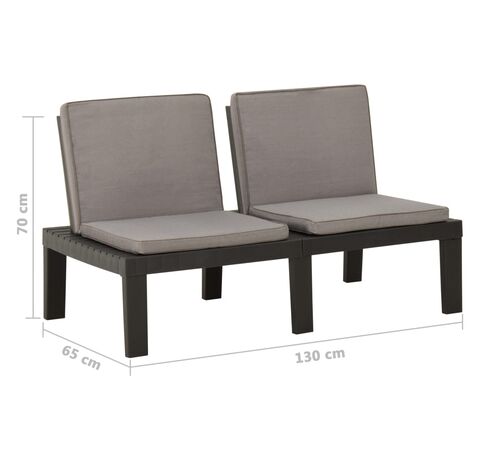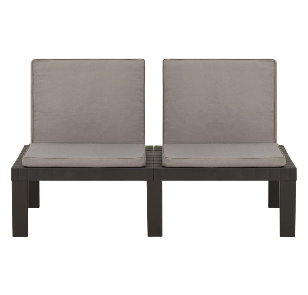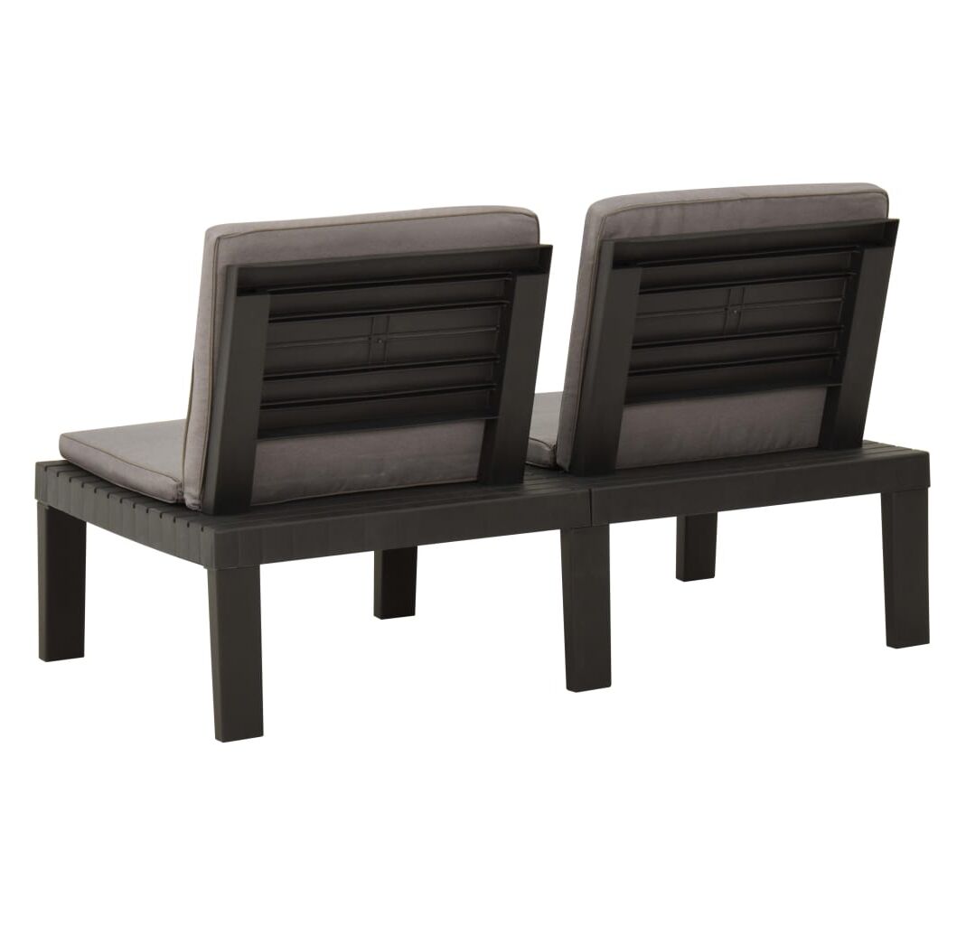 Bănci de grădină cu perne, 2 buc., gri, plastic