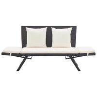 Bancă de grădină rabatabilă cu perne, negru, poliratan