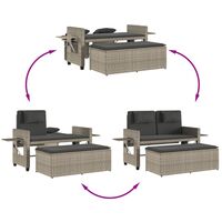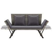 Bancă de grădină rabatabilă cu perne, gri, poliratan