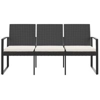 Bancă de grădină cu 3 locuri, cu perne, negru, PP ratan