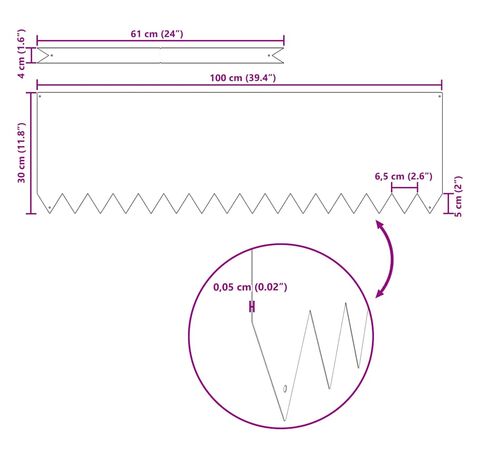 100 x 0.5 x 30 cm
