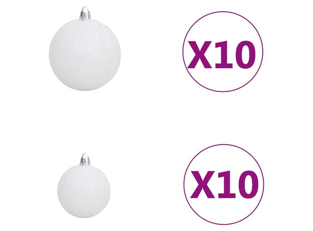 Acest frumos pom de Crăciun, realizat din material PVC, este foarte realist prin forma și aspectul său. Are ramuri foarte groase, care fac ca arborele să pară și mai realist. Toate ramurile pot fi aliniate, ceea ce vă permite să reglați arborele în forma perfectă. Suportul din metal inclus, oferă pomului dvs. o stabilitate optimă. Pomul de Crăciun poate fi folosit din nou în fiecare an, făcându-l o alegere foarte economică în comparație cu un brad natural. Luminile LED eficiente din punct de vedere energetic, se aprind frumos și creează o atmosferă confortabilă de sărbătoare. Mai mult decât atât, decorat cu vârful și globurile frumoase, acest pom de Crăciun va fi atrăgător pentru locuința dvs.