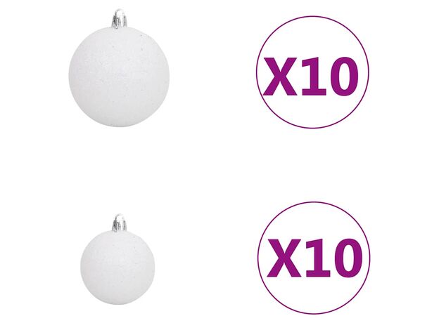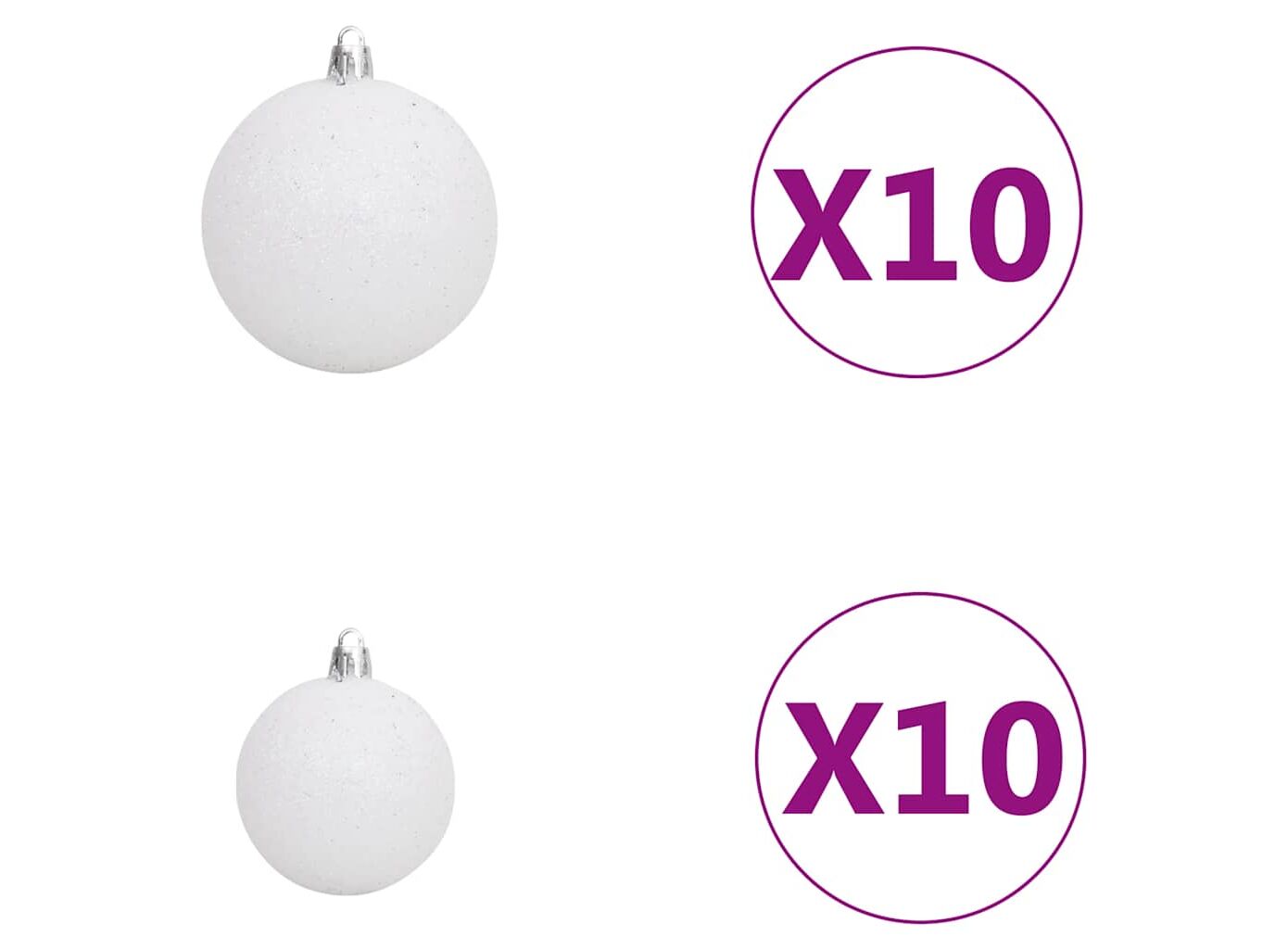 Acest pom de Crăciun frumos, realizat din material PVC, este foarte realist ca formă și aspect. Picioarele din oțel îi adaugă stabilitate. Pomul de Crăciun poate fi refolosit în fiecare an, fiind o alegere foarte economică în comparație cu un brad natural. Luminile cu LED, eficiente din punct de vedere energetic, se aprind frumos și creează o atmosferă confortabilă de sărbători. Mai mult decât atât, decorat cu vârful și globurile frumoase, acest pom de Crăciun va deveni punctul de atracție în locuința dvs.