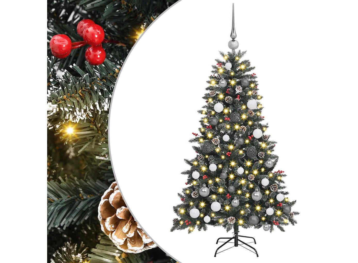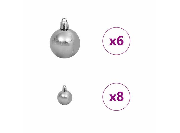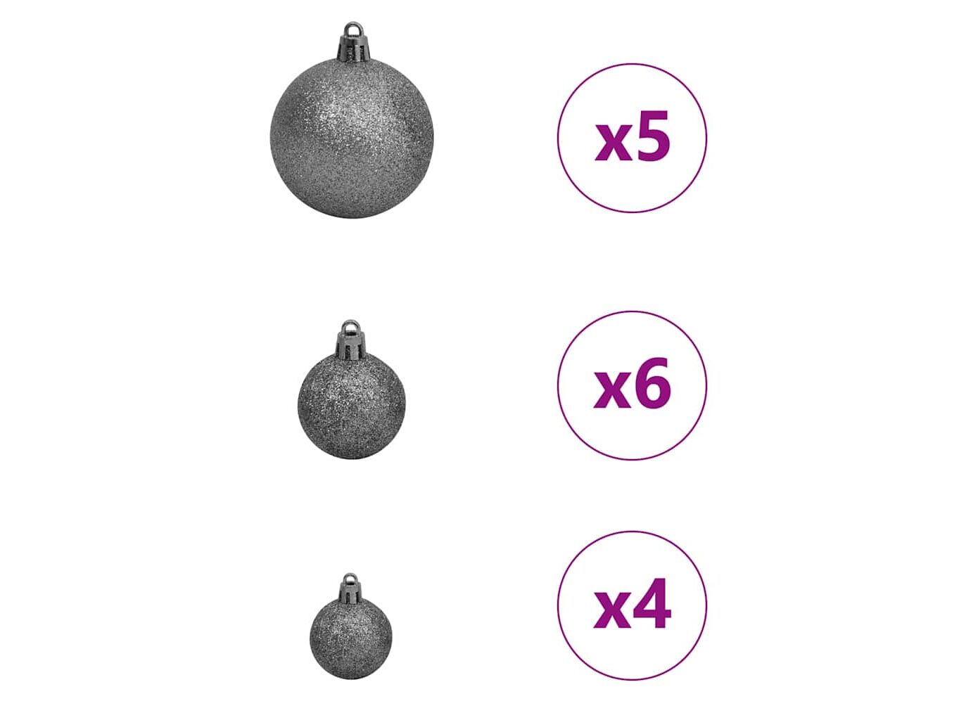 - Conținutul livrării: 1 x pom de Crăciun, 1 x suport, 1 x lumină LED, 1 x vârf, 20 x minge de 3 cm, 21 x minge de 4 cm, 20 x minge de 6 cm<\li>