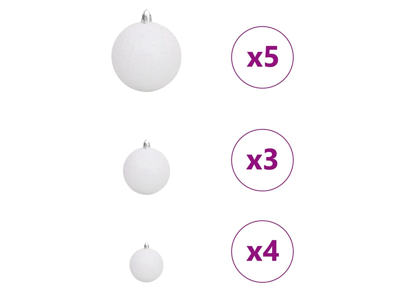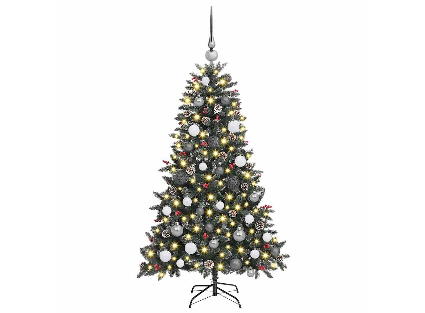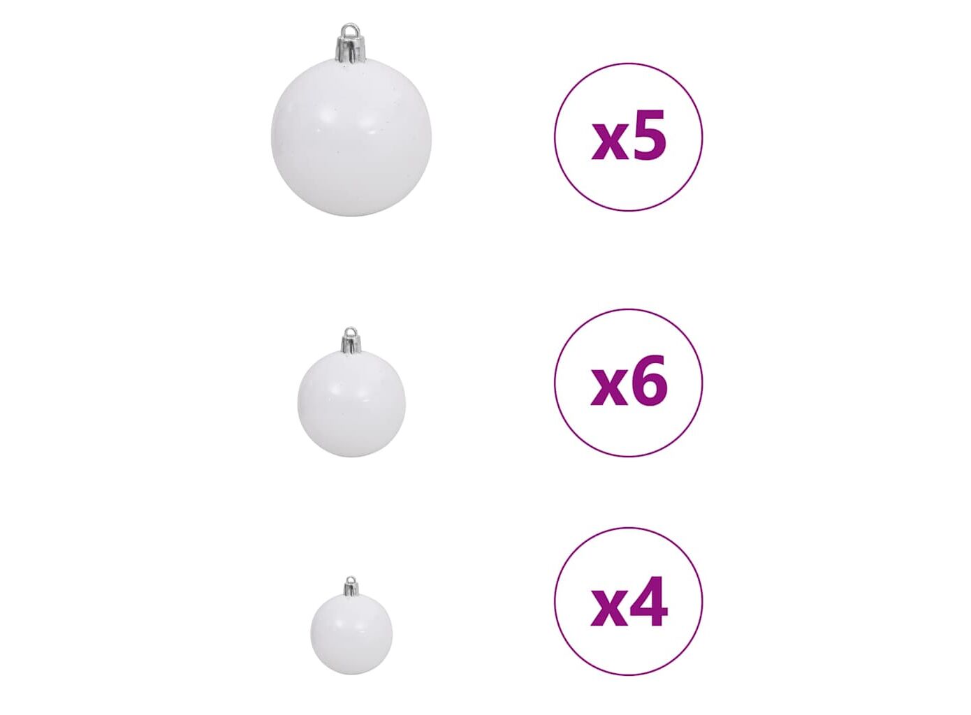 - Conținutul livrării: 1 x pom de Crăciun, 1 x suport, 1 x lumină LED, 1 x vârf, 20 x minge de 3 cm, 21 x minge de 4 cm, 20 x minge de 6 cm<\li>