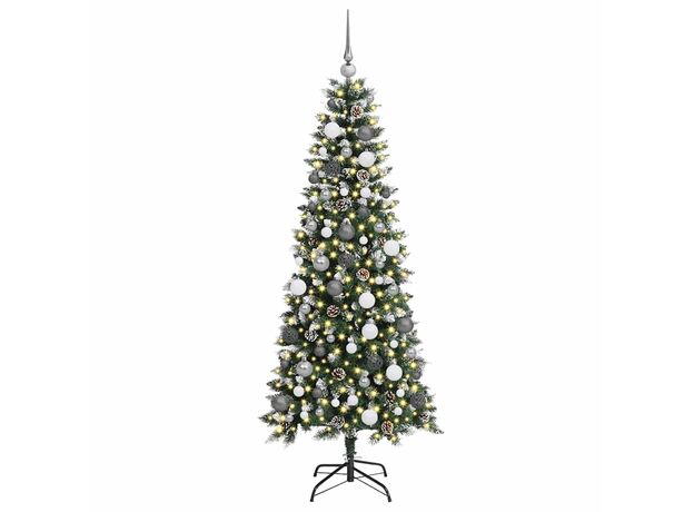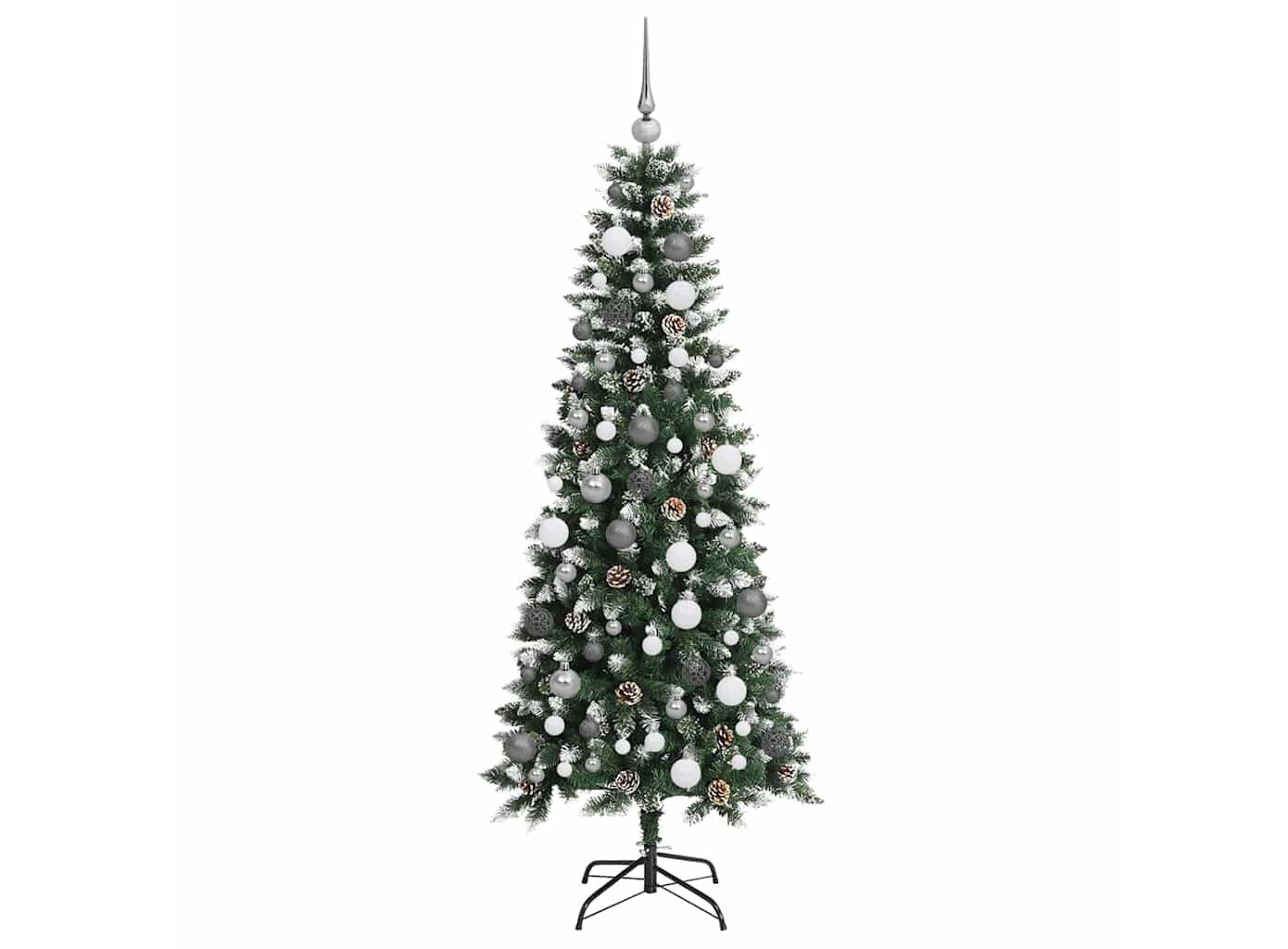 - Conținutul livrării: 1 x brad de Crăciun, 1 x suport, 1 x lumină cu fir LED, 1 x vârf, 40 x mingi de 3 cm, 40 x mingi de 4 cm, 40 x mingi de 6 cm<\li>