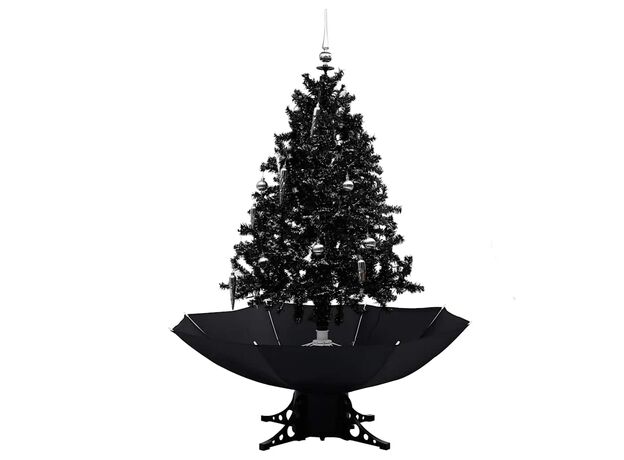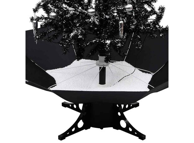 Brad de Crăciun cu ninsoare și bază umbrelă, negru, 140 cm, PVC