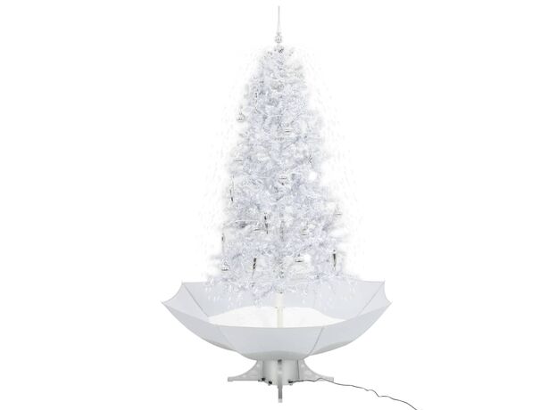 Brad de Crăciun cu ninsoare și bază umbrelă, alb, 190 cm