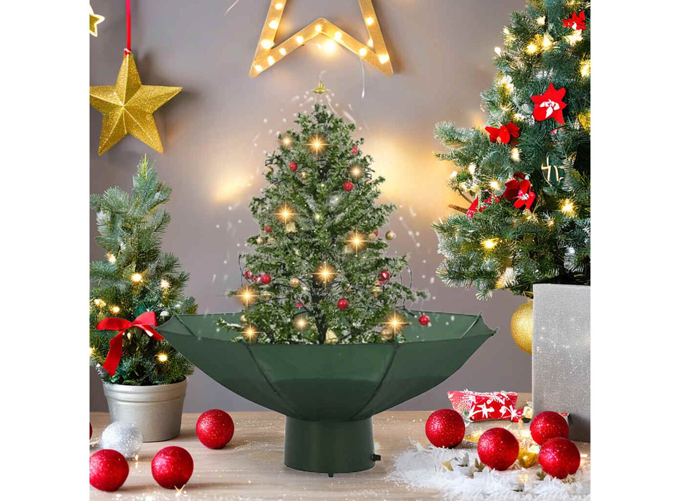 Brad de Crăciun cu ninsoare și bază umbrelă, verde, 75 cm