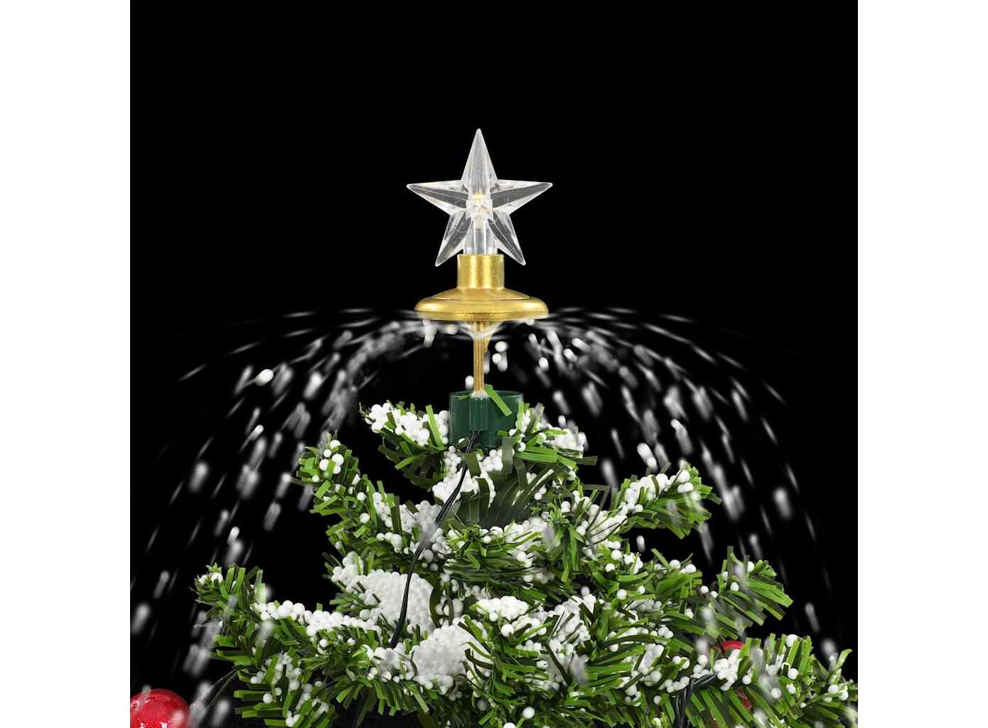 Având o textură asemănătoare cu cea autentică, acest brad de Crăciun artificial are ramuri cu aspect realist. Include o melodie veselă, ornamente festive, beculețe și zăpadă artificială, care va cădea peste brad, odată ce va fi pornită, creând atmosfera ideală pentru sărbători. Pompa integrată transferă zăpada de la bază și continuă să o pulverizeze din vârf; baza inclusă, în formă de umbrelă, va aduna zăpada și, prin intermediul unui dispozitiv de control, veți putea controla cantitatea de ninsoare, de la o pudră fină la un vârtej de magie albă, pentru a vă petrece Crăciunul și chiar întreaga iarnă admirând modul în care ninsoarea cade și acoperă ramurile. În plus, pentru că este ușor și durabil, acest brad de Crăciun poate fi folosit în fiecare an, fiind o alegere economică în comparație cu un brad adevărat. Bradul de Crăciun este ușor de asamblat pentru că este prevăzut cu un sistem simplu de conectare a pieselor una în alta.