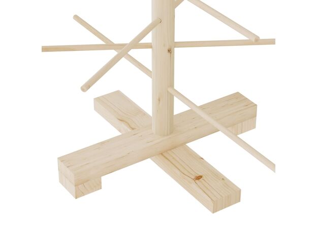 - Material durabil: Suportul și stâlpul din mijloc sunt realizate din lemn masiv de pin. Lemnul masiv de pin este un material natural frumos. Are fibre drepte, iar nodurile dau materialului originalitate și un aspect rustic. De asemenea, ramurile sunt realizate din bambus care este cunoscut pentru flexibilitatea si duritatea sa.