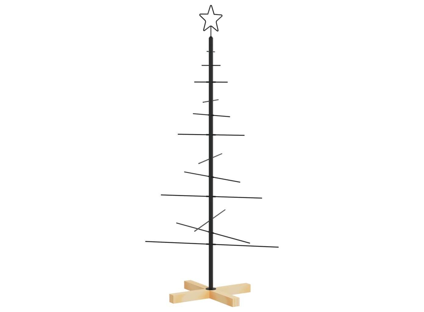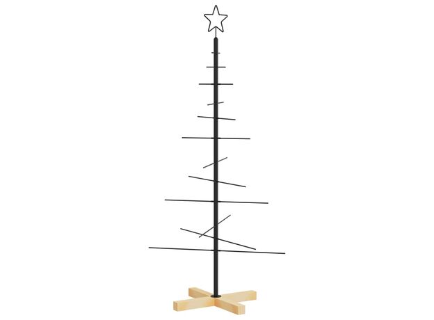 Brad de Crăciun din metal cu bază din lemn, negru, 120 cm