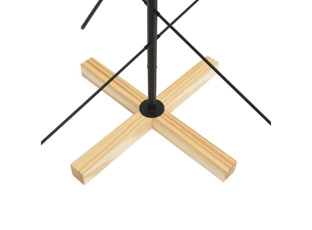 • Construcție robustă: Suportul pentru decorațiuni de Crăciun are un cadru din oțel și este susținut de o bază din lemn, pentru stabilitate și robustețe. Fiecare ramură are 2 manșoane din silicon care sunt prevăzute pentru fixare, împiedicând ramurile să se miște liber.