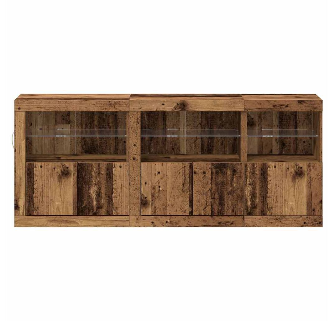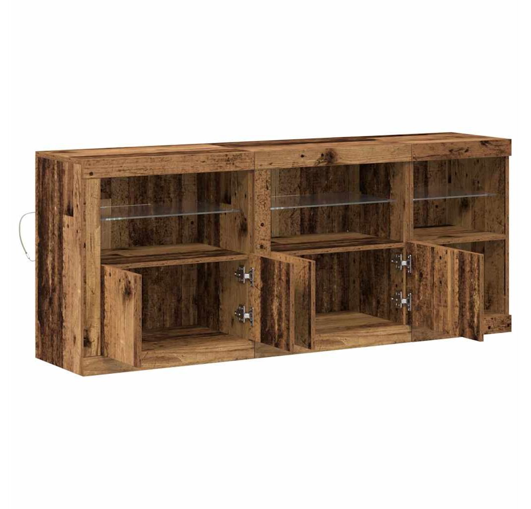 Acest bufet din lemn solid recuperat aduce un vibe rustic, în timp ce îți oferă multă stocare. Designul său încăpător are un finisaj cool și vine cu lumini LED, fiind perfect pentru dining sau living.