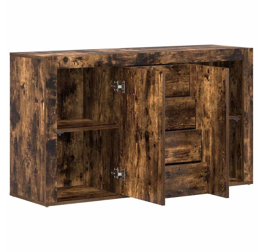 Bufetul din stejar afumat combină un design elegant cu utilitate, făcându-l un plus perfect pentru sufrageria ta sau pentru living. Stilul său modern și finisajul texturat îl ajută să se integreze ușor în orice decor, oferind un avantaj stilat și mult spațiu pentru esențialele tale.