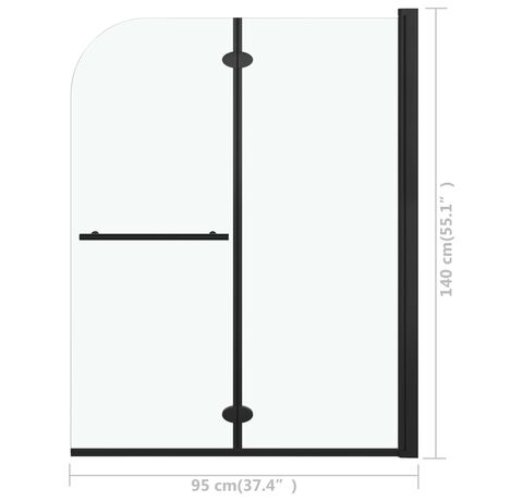 Cabină de duș pliabilă, 2 panouri, negru, 95 x 140 cm, ESG